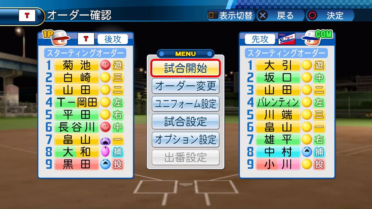 【内野手】白崎(遊三)、菊地(二)、山田(二)、畠山(一)、T-岡田(一)