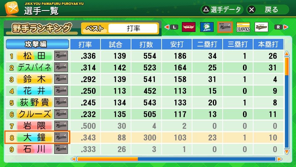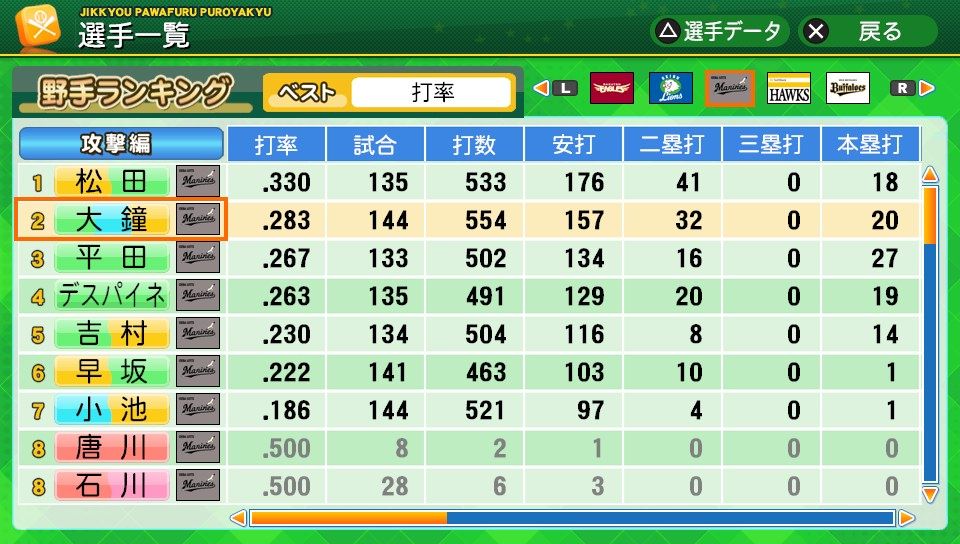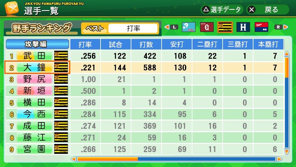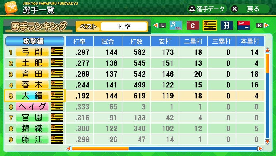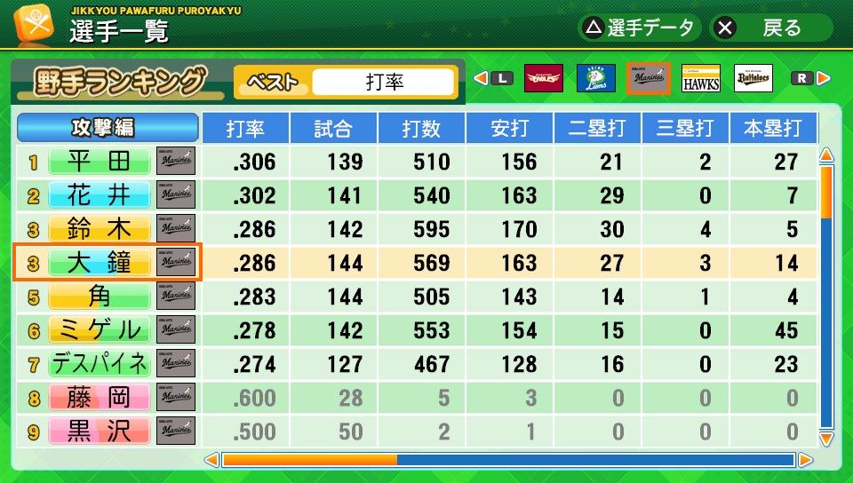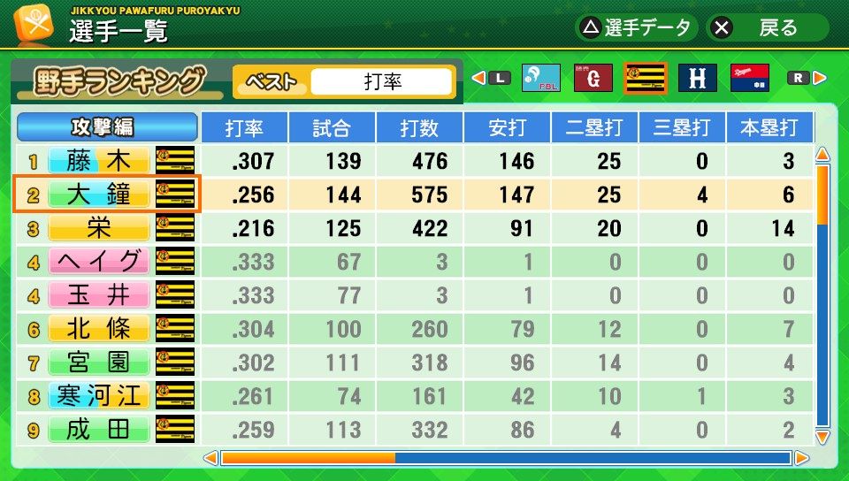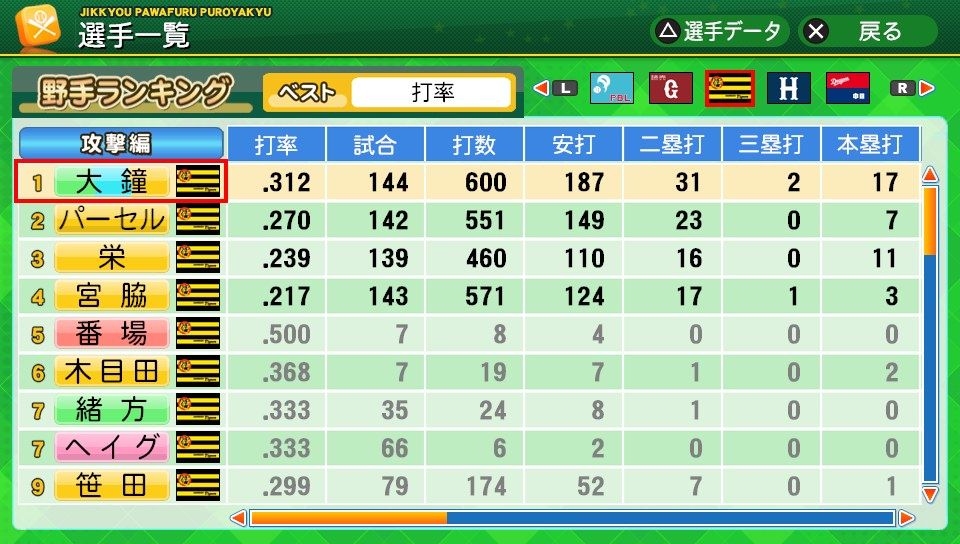 弾3CCCCCD キャッチャーF 粘り打ち 初球○ ハイボールヒッター ささやき戦術
