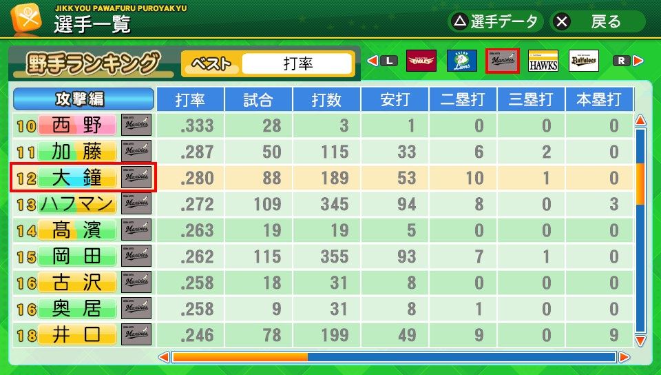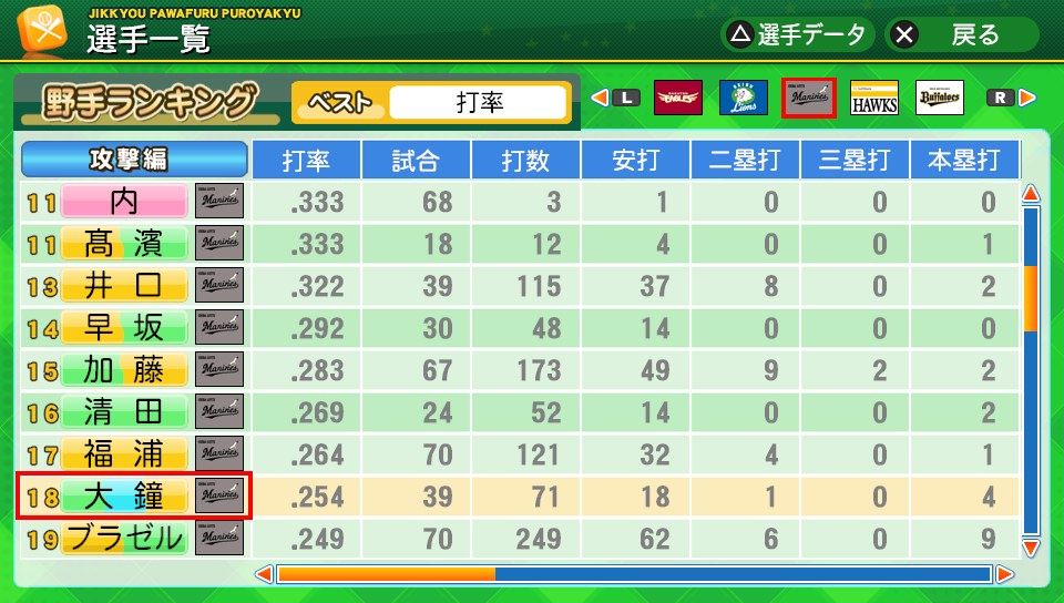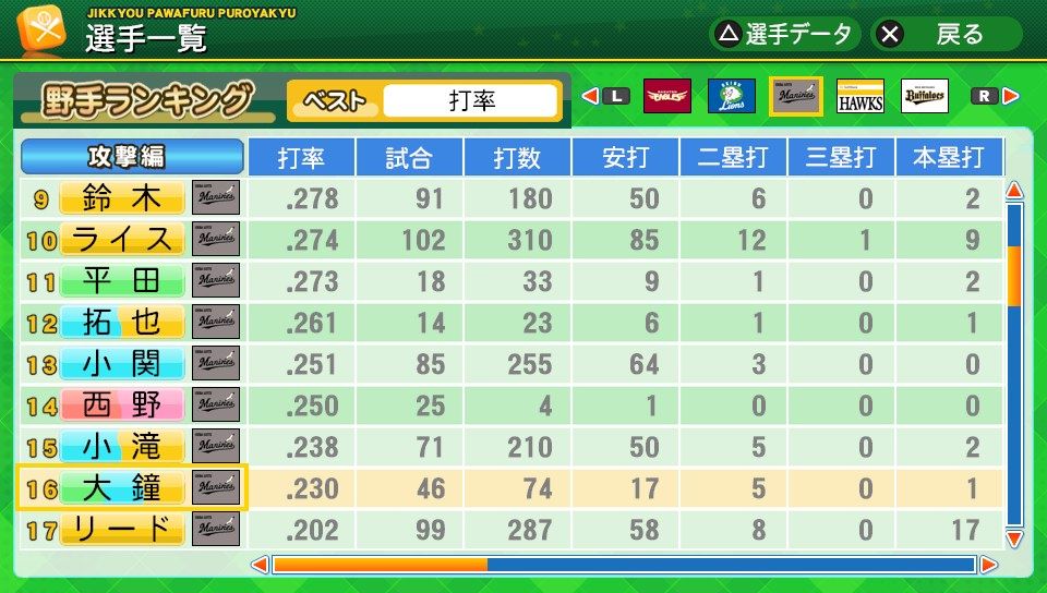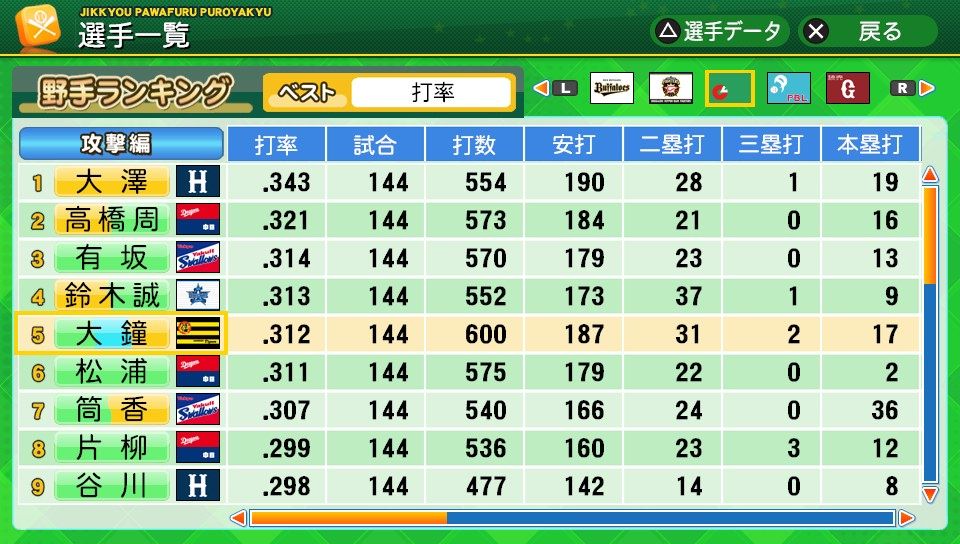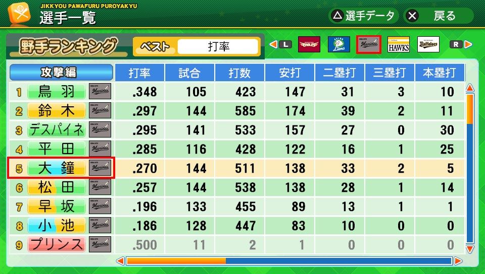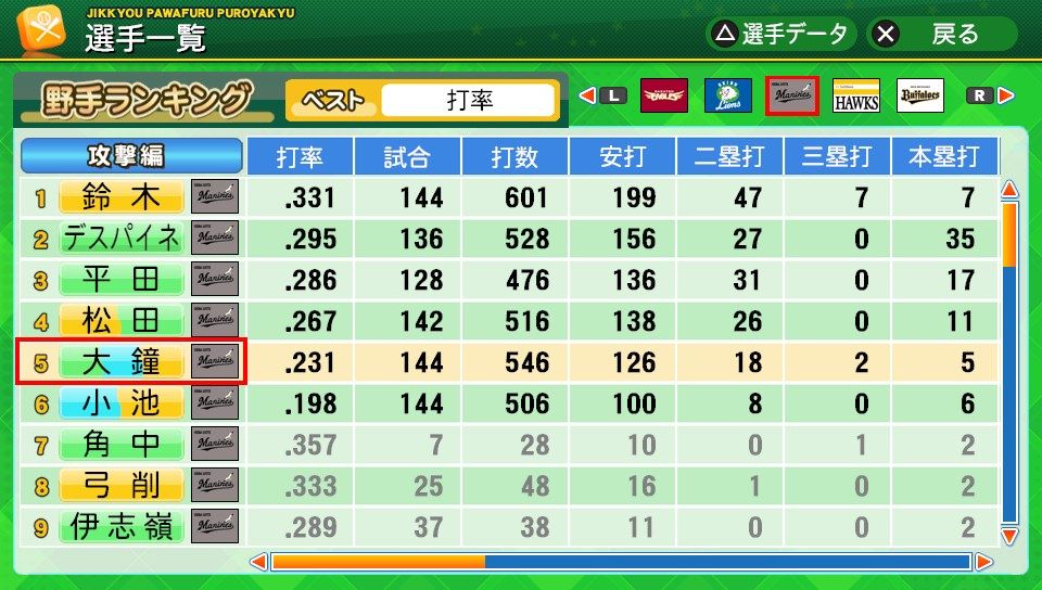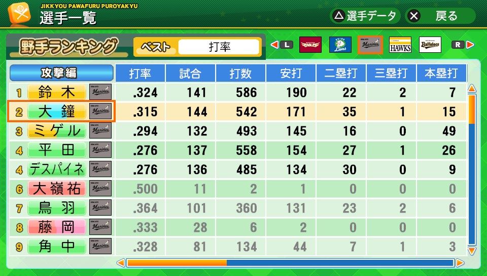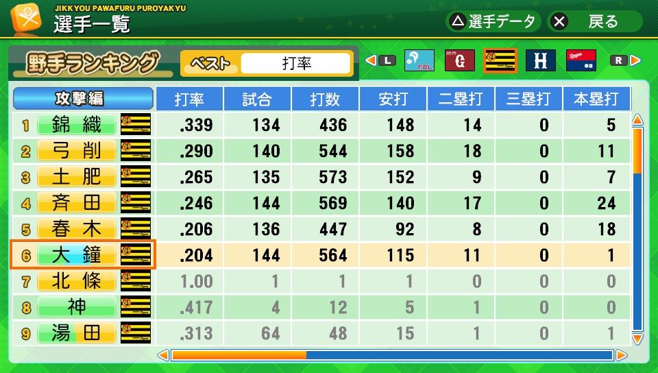 弾3CCCCCD キャッチャーF 粘り打ち 初球○ ハイボールヒッター ささやき戦術