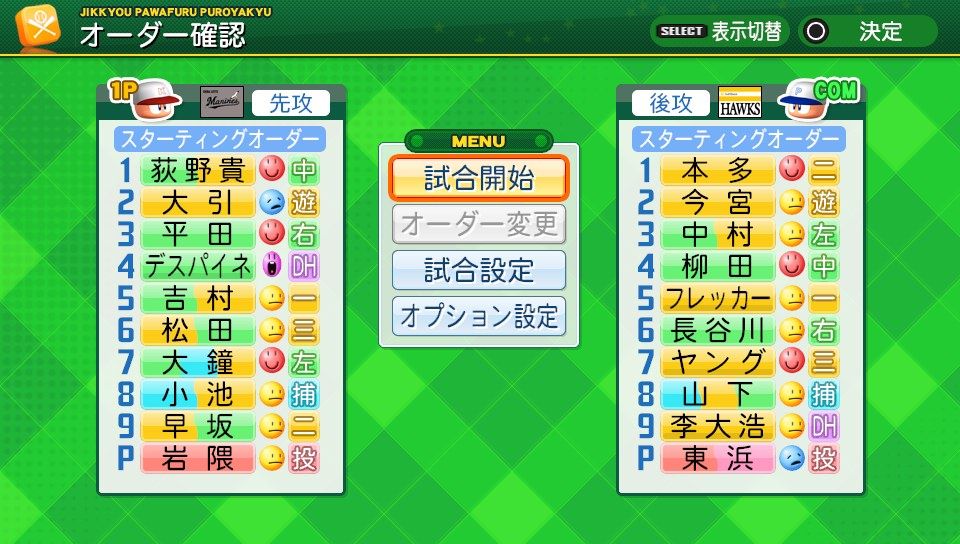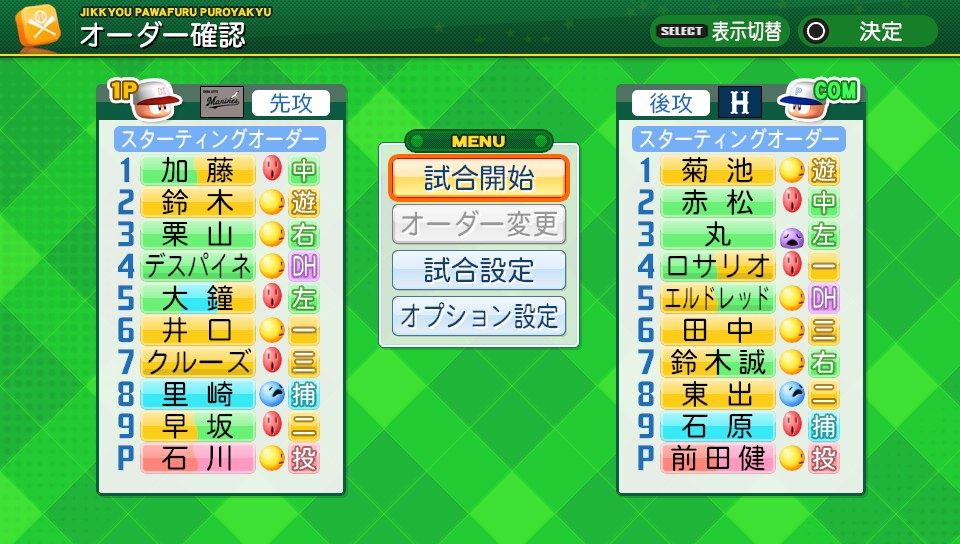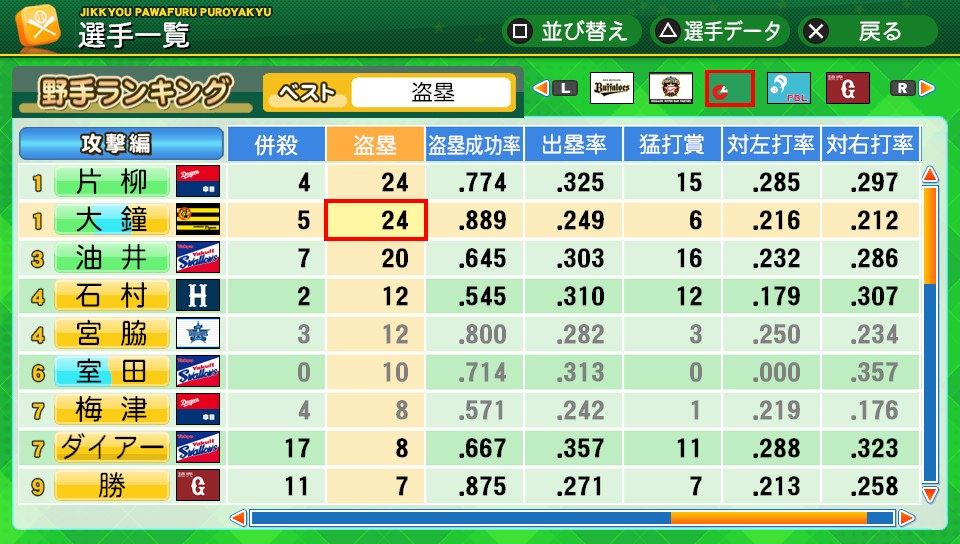 弾4EECEDE 対左C 盗塁A 対左C キャッチャーF ケガE 粘り打ち ハイボールヒッター ささやき戦術