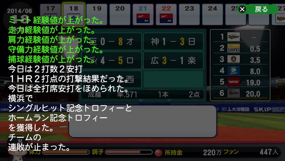 6月に1軍初昇格すると14日の広島戦でプロ初ヒット