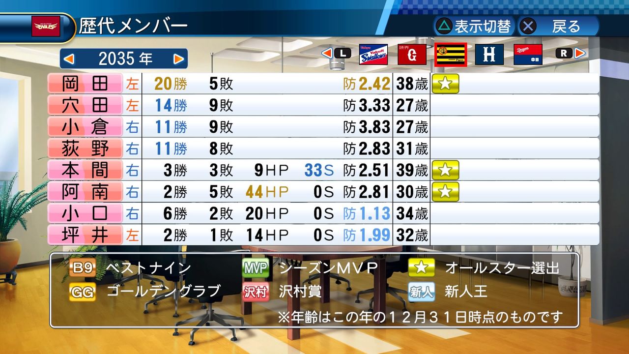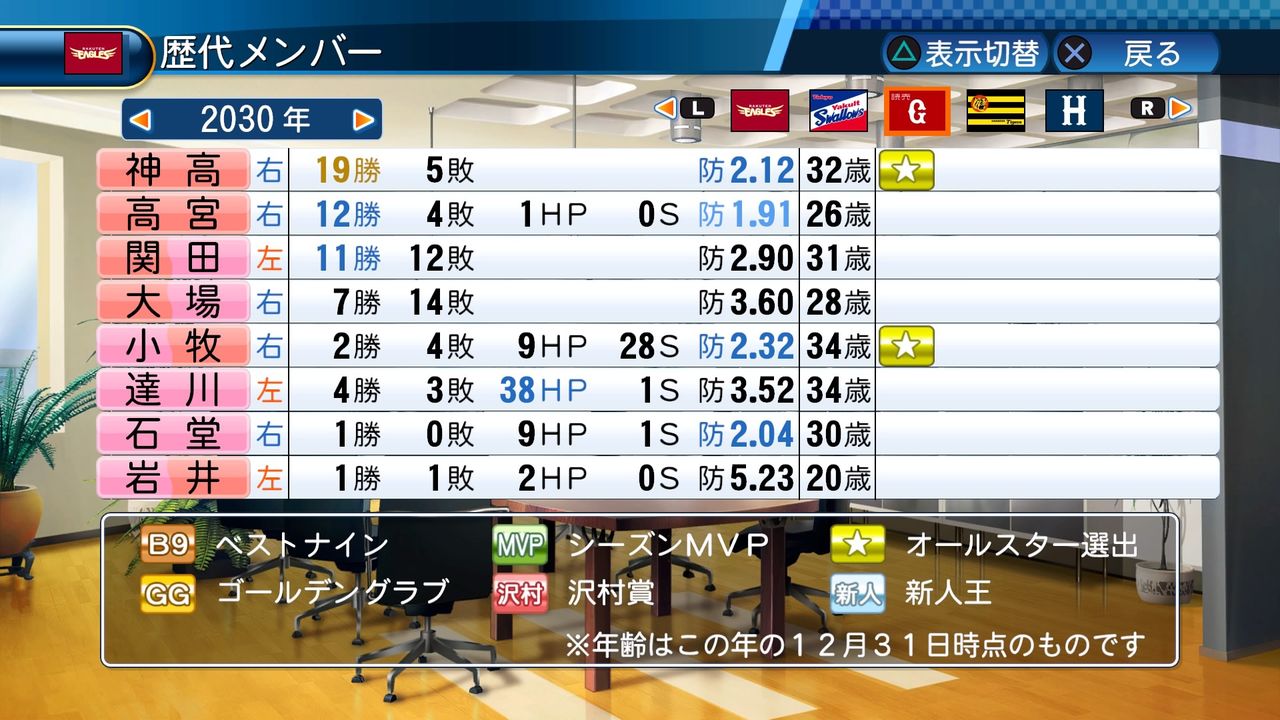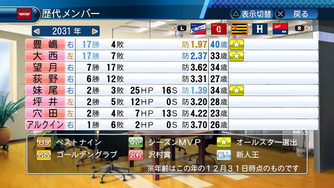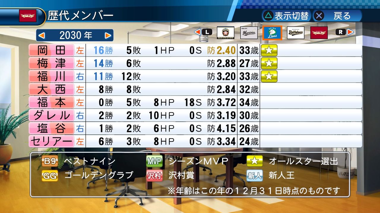 最多勝 5回(2017、2024、2026、2029、2030)