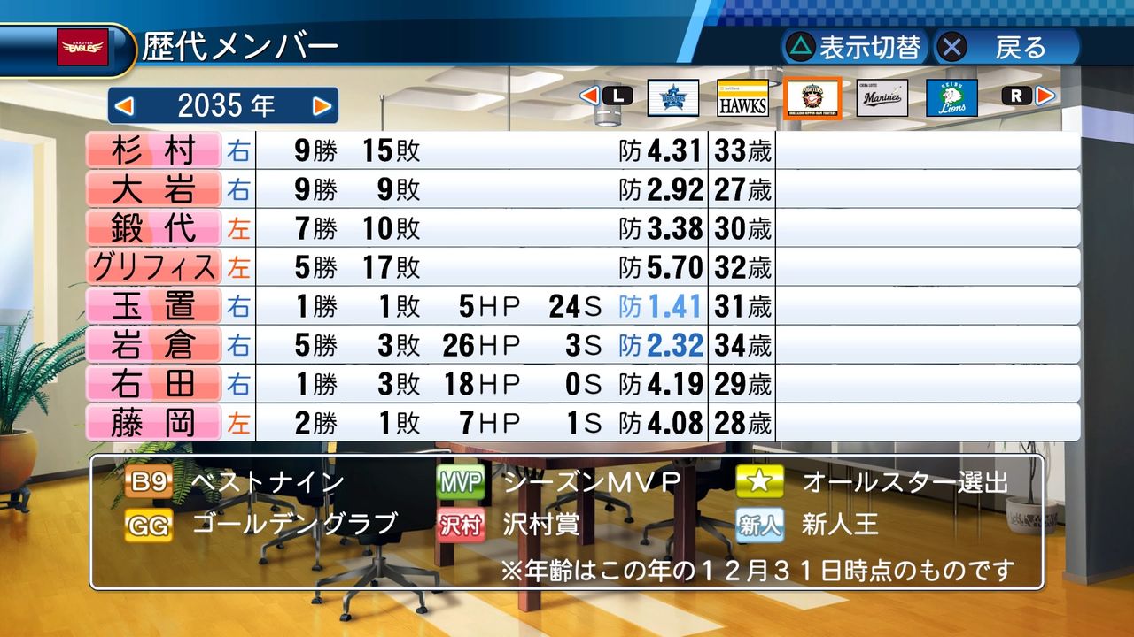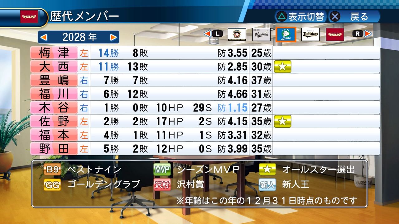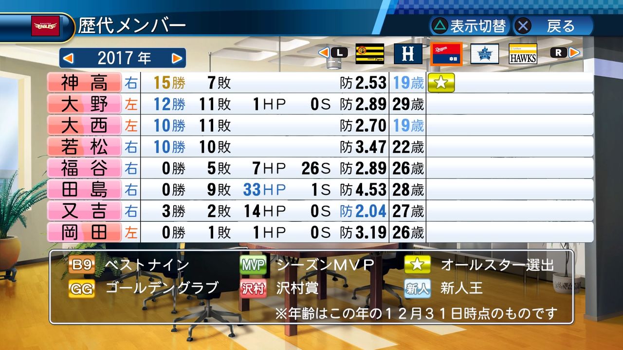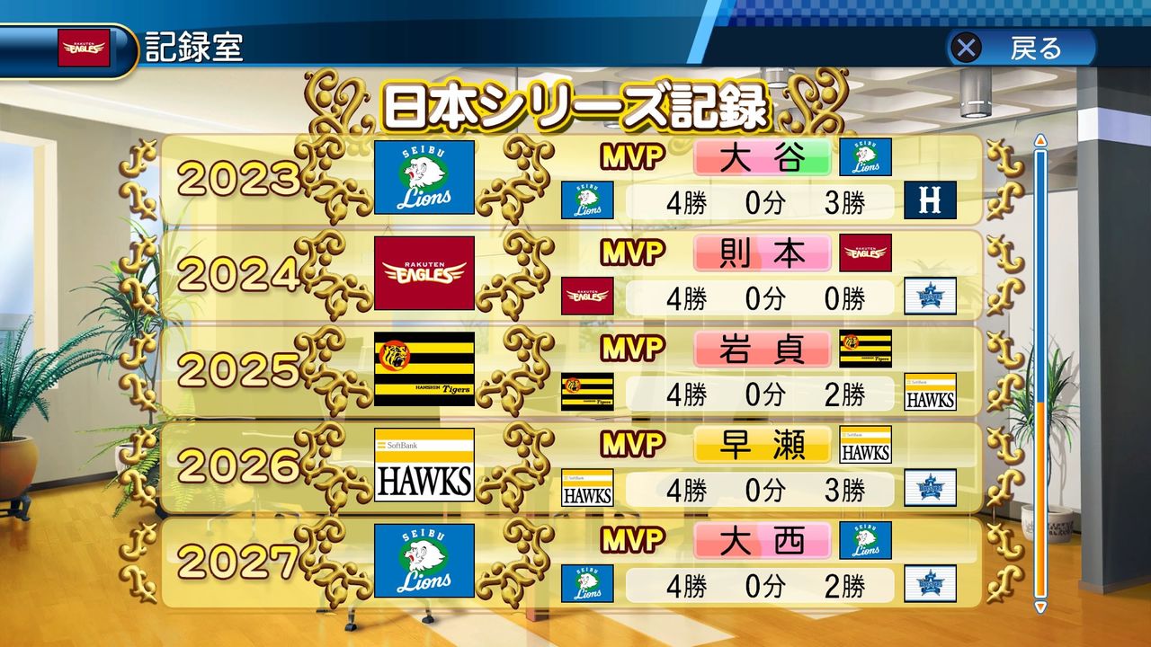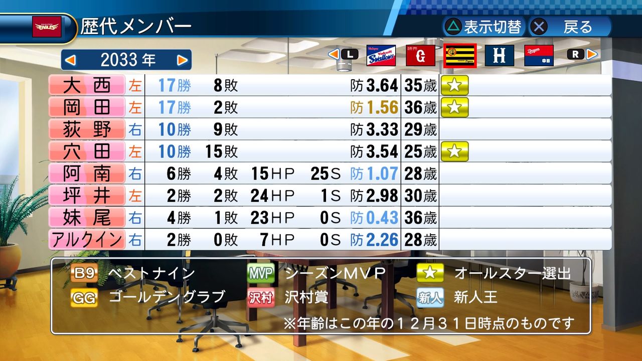 最多勝 5回(2017、2024、2026、2029、2030)