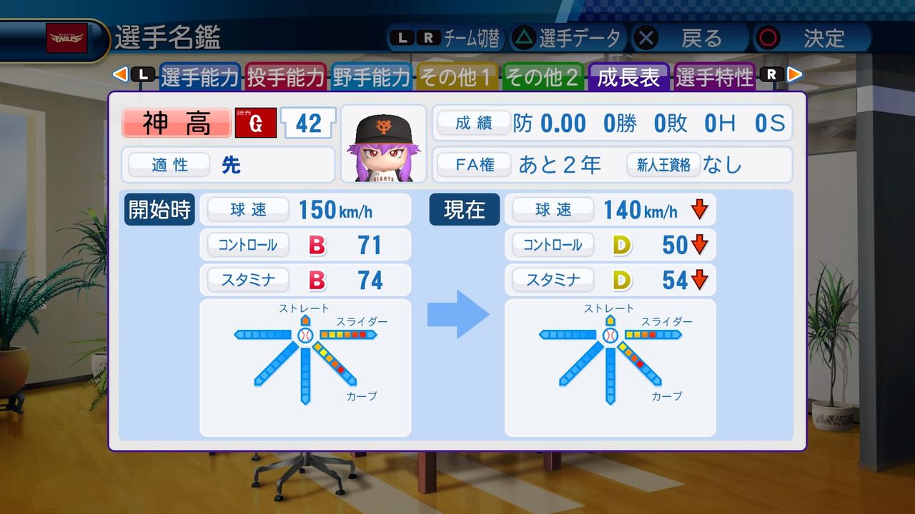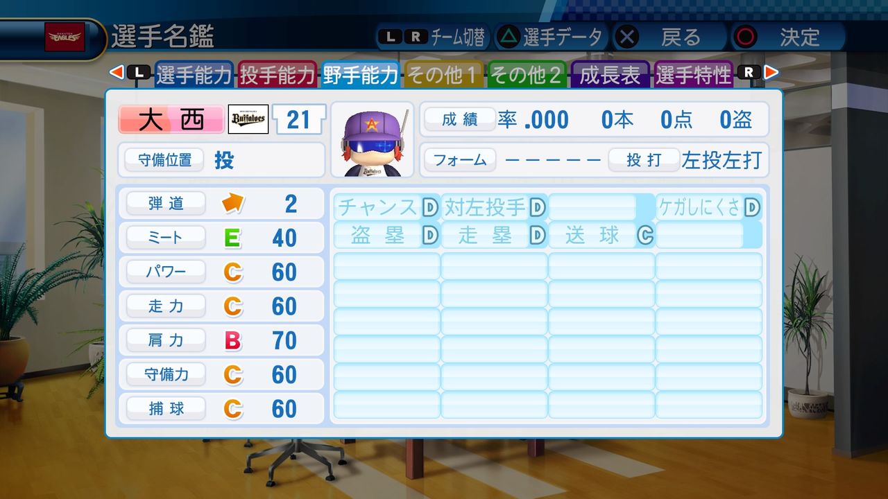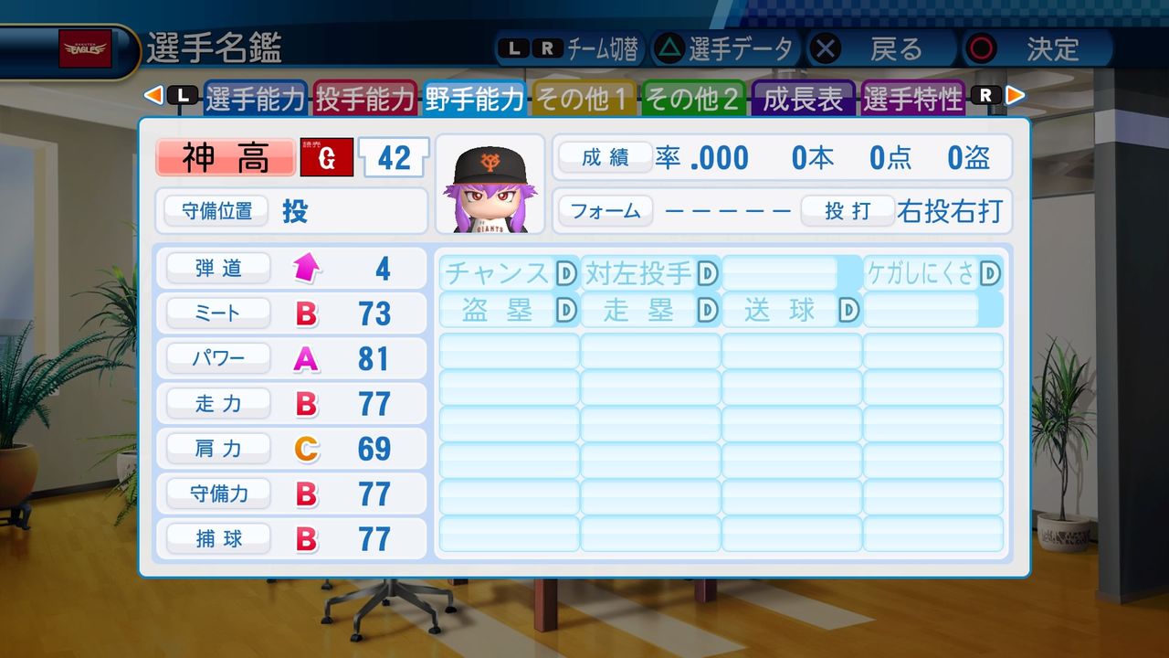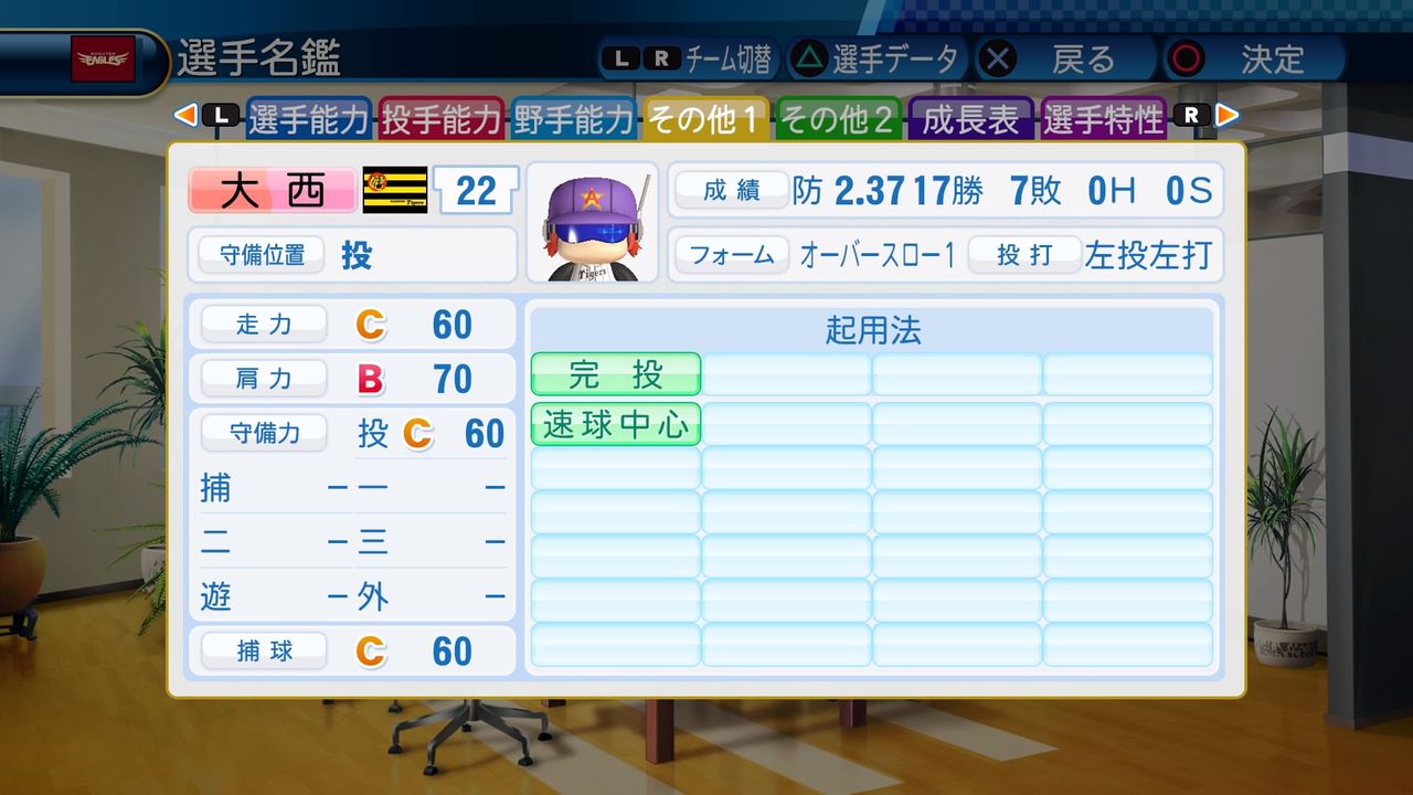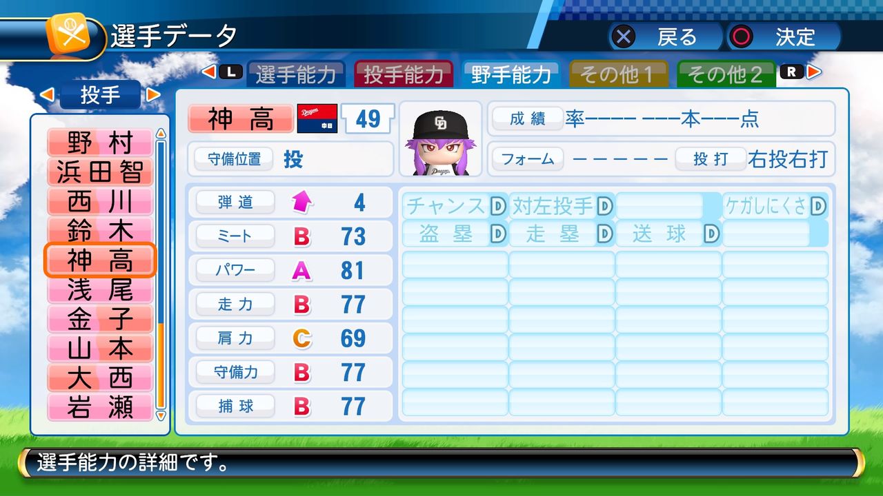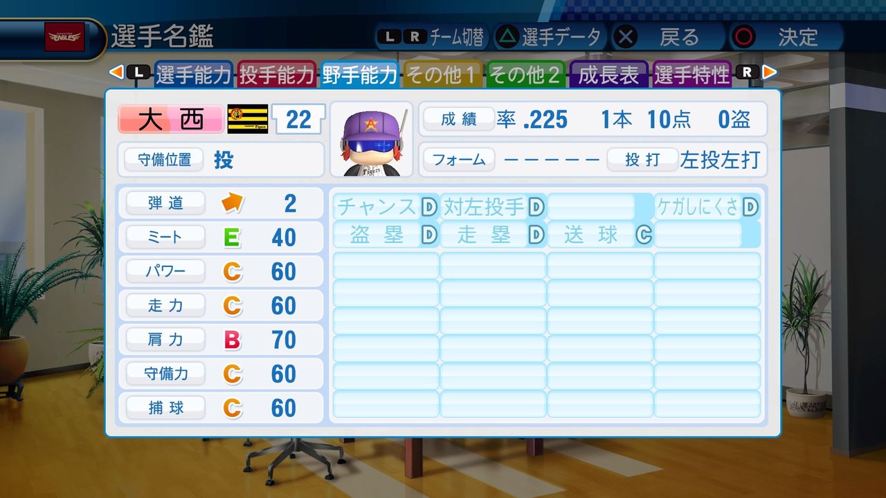 回復C 寸前× 奪三振 力配分 低め○