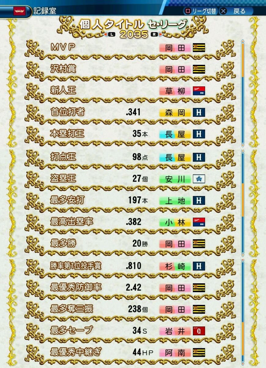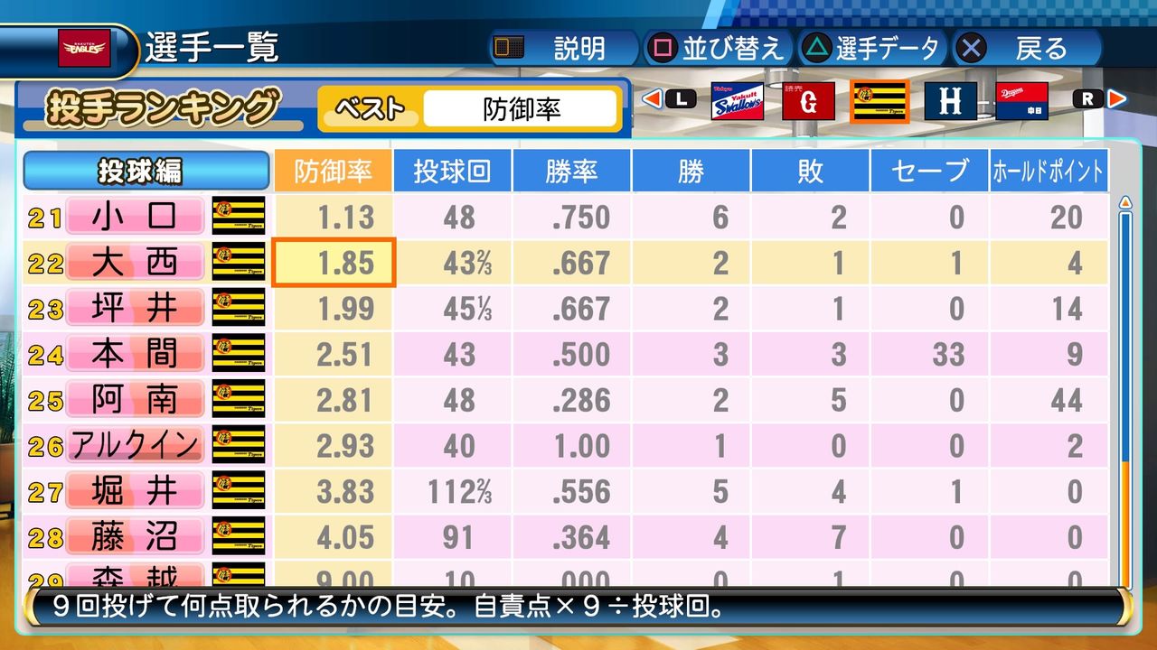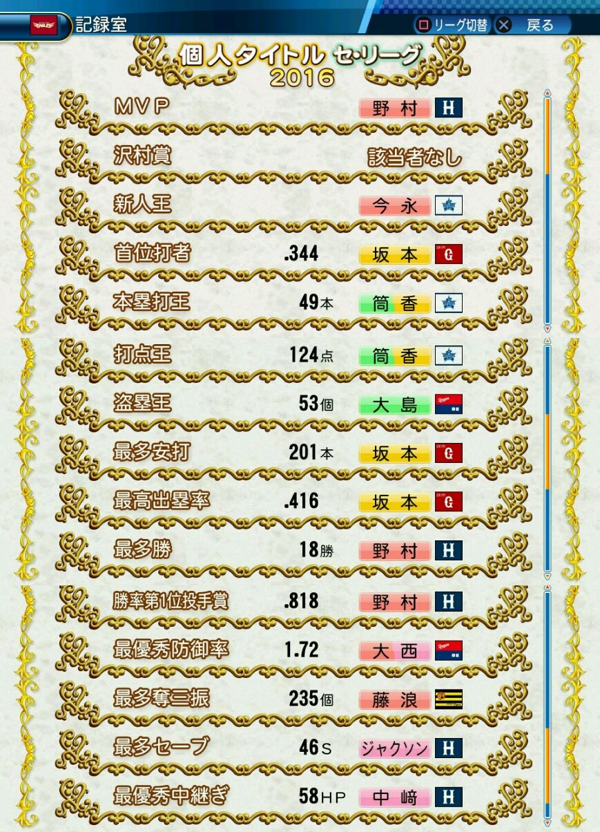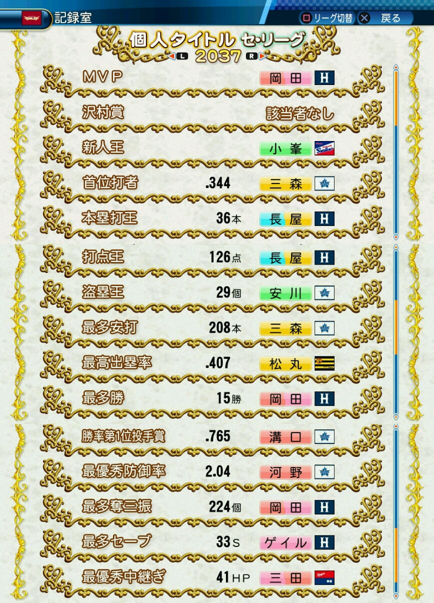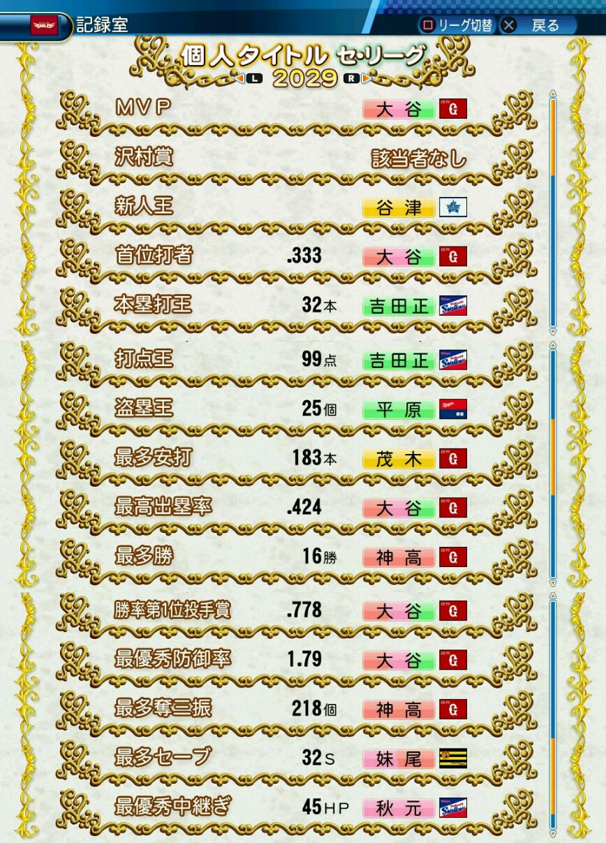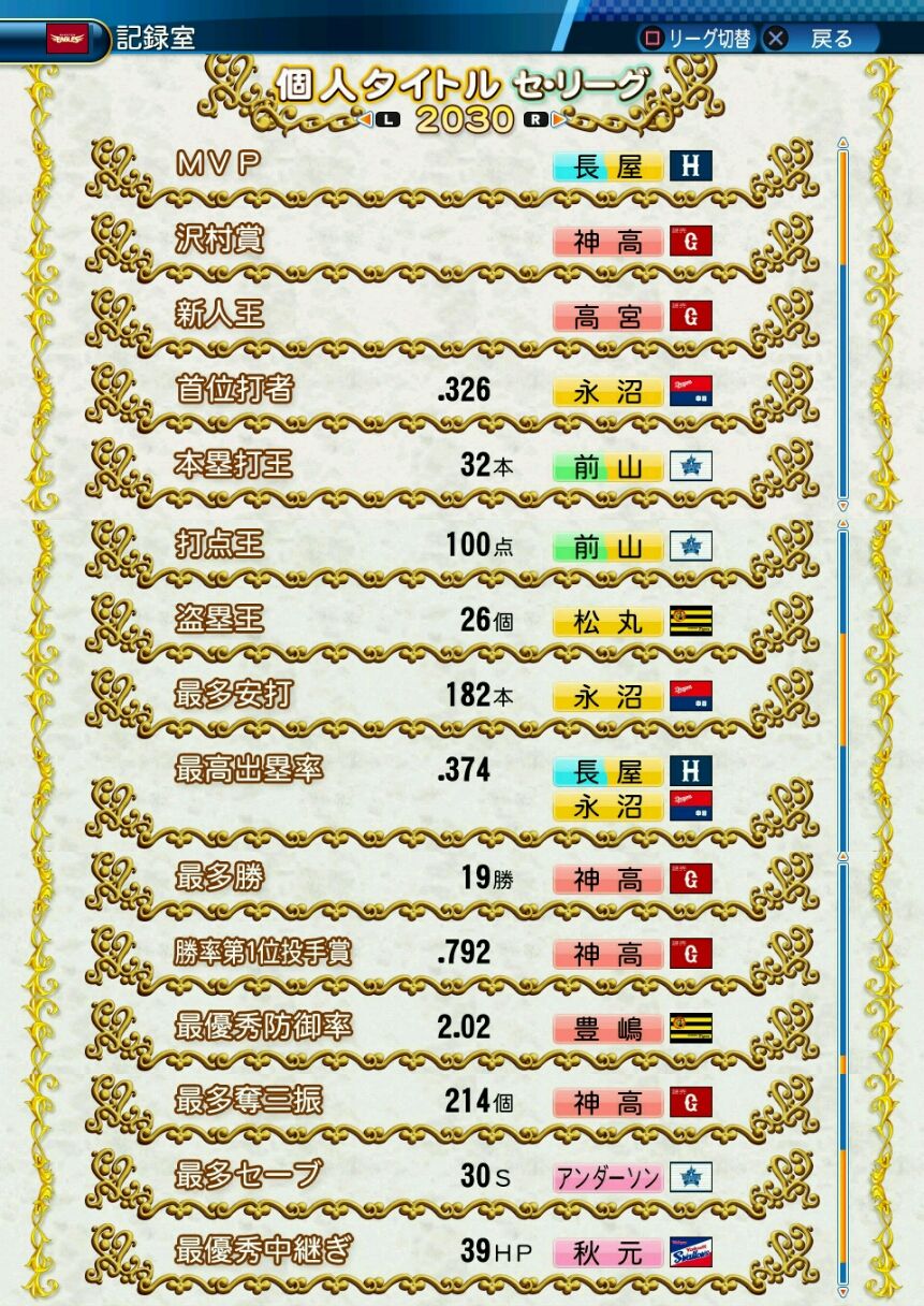 回復C 寸前× 奪三振 力配分 低め○
