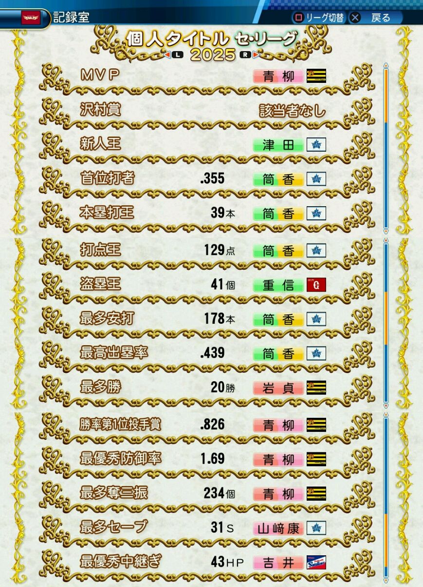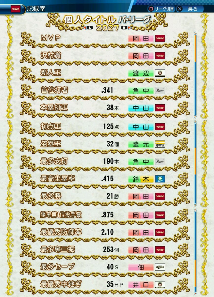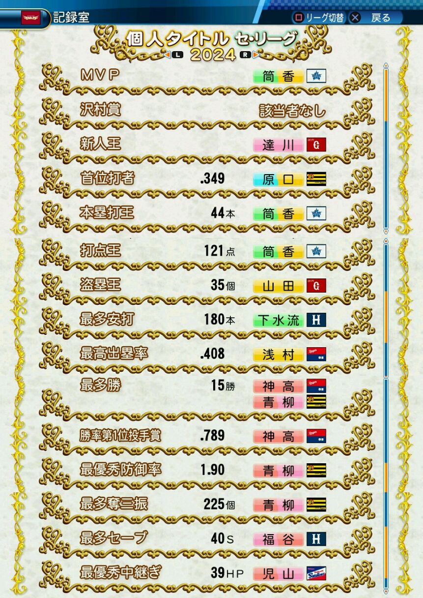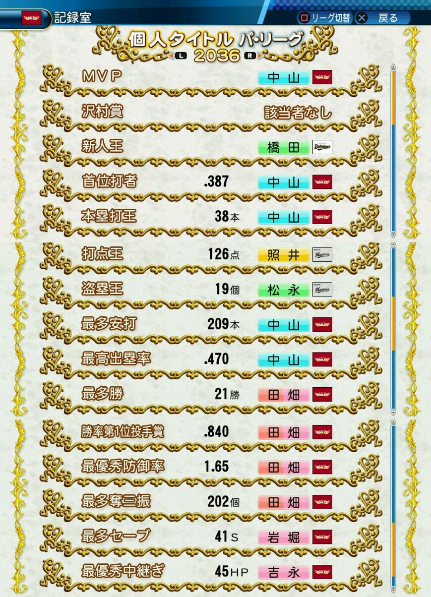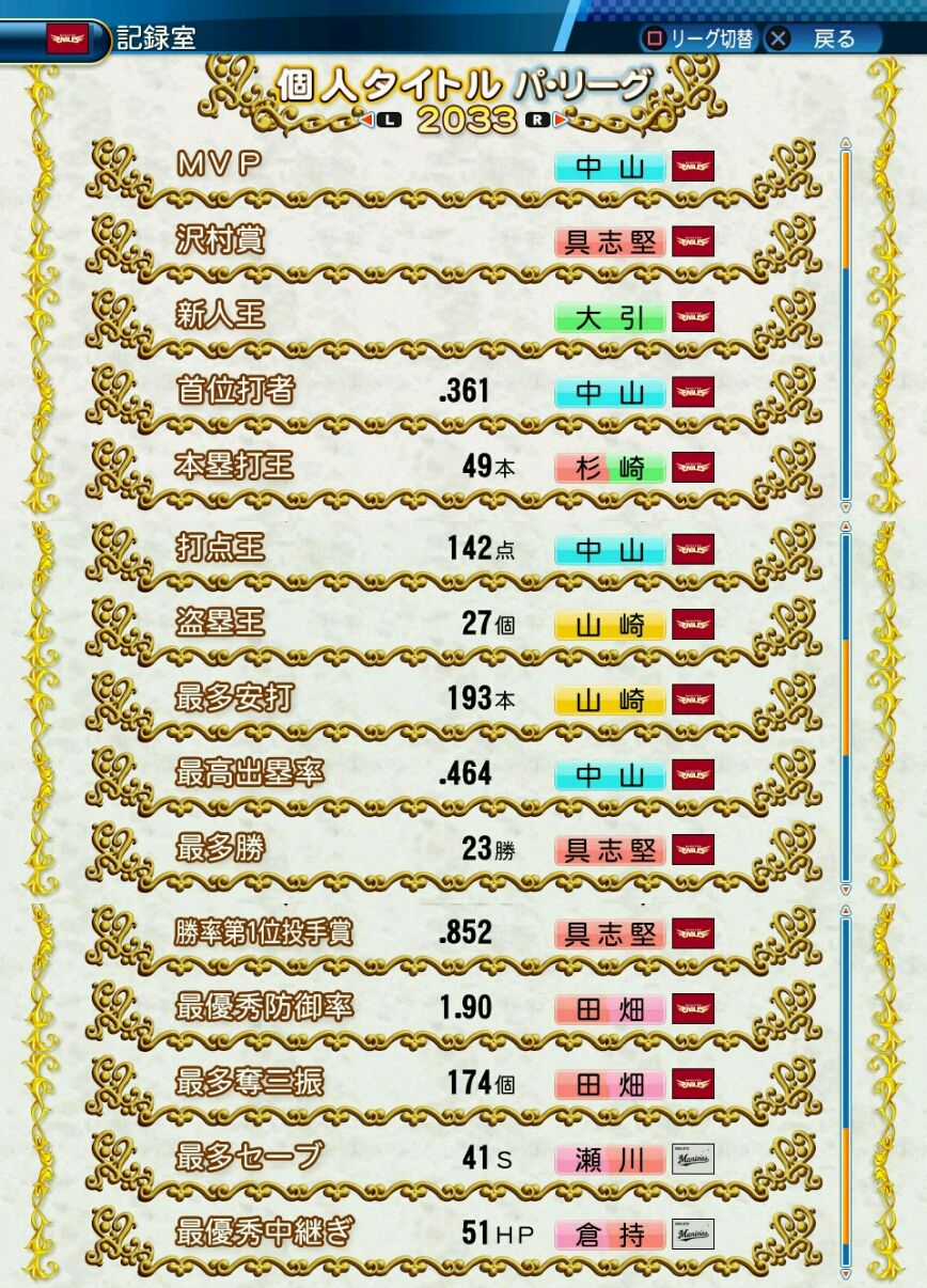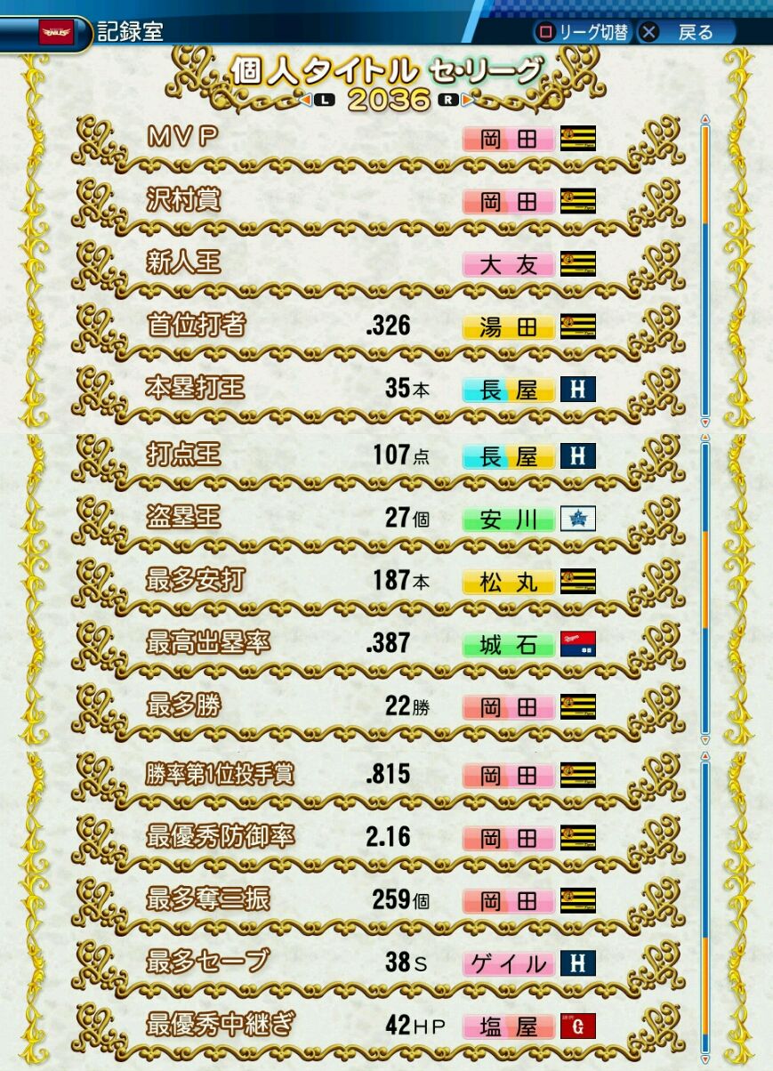 回復C 寸前× 奪三振 力配分 低め○