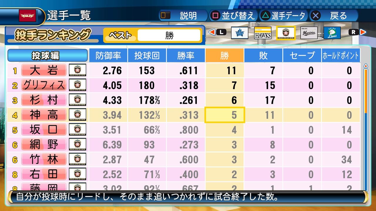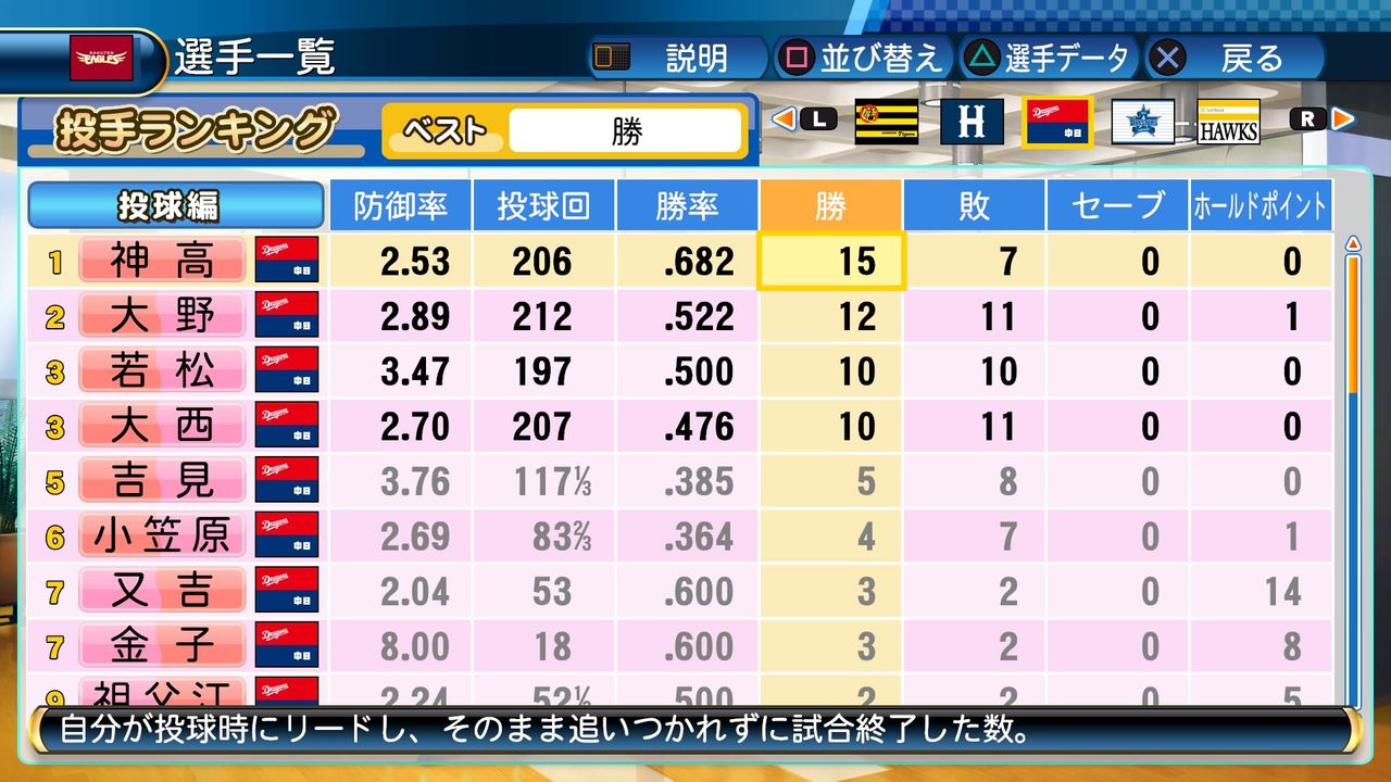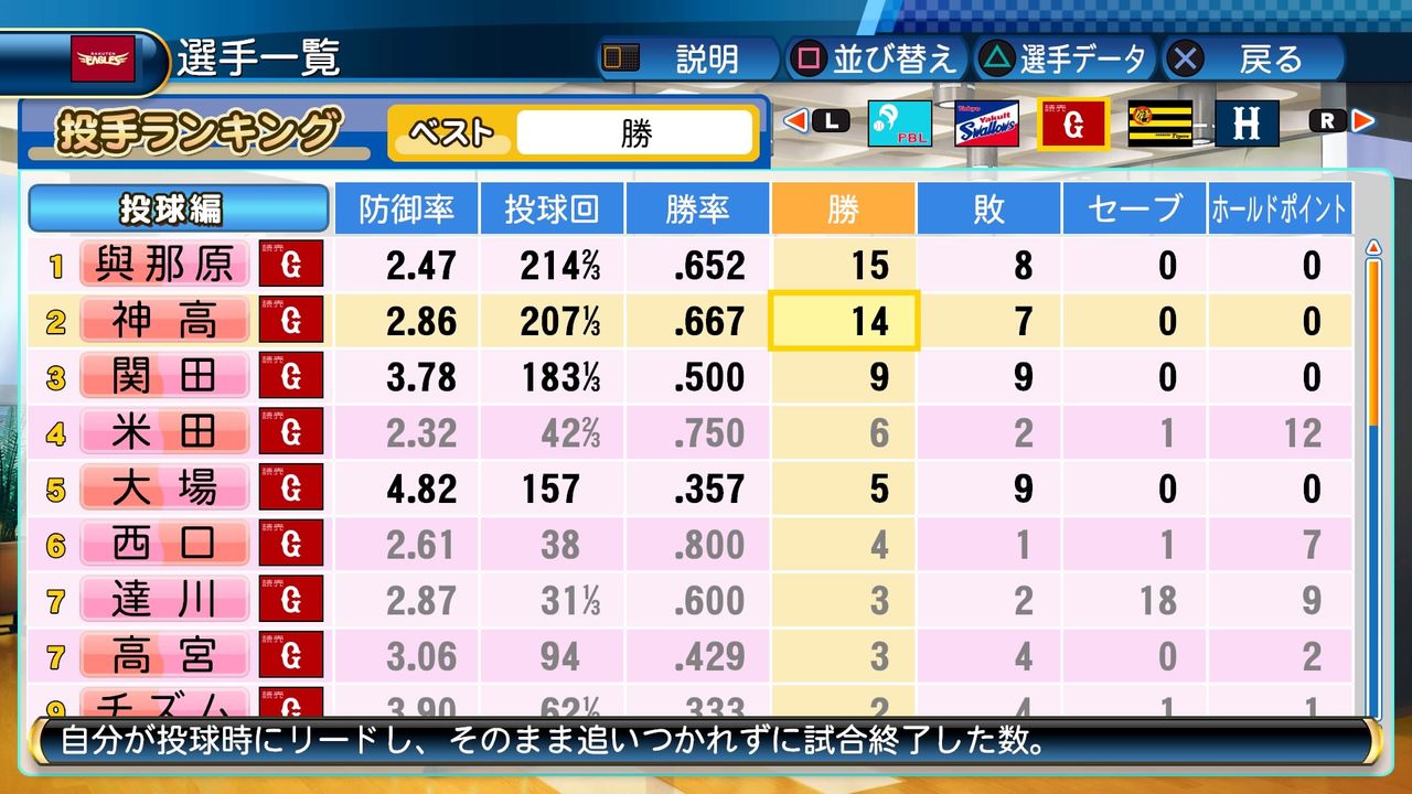 それでも神高と共にチーム内最多勝に輝いた。