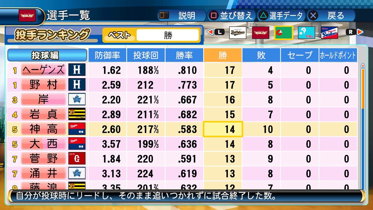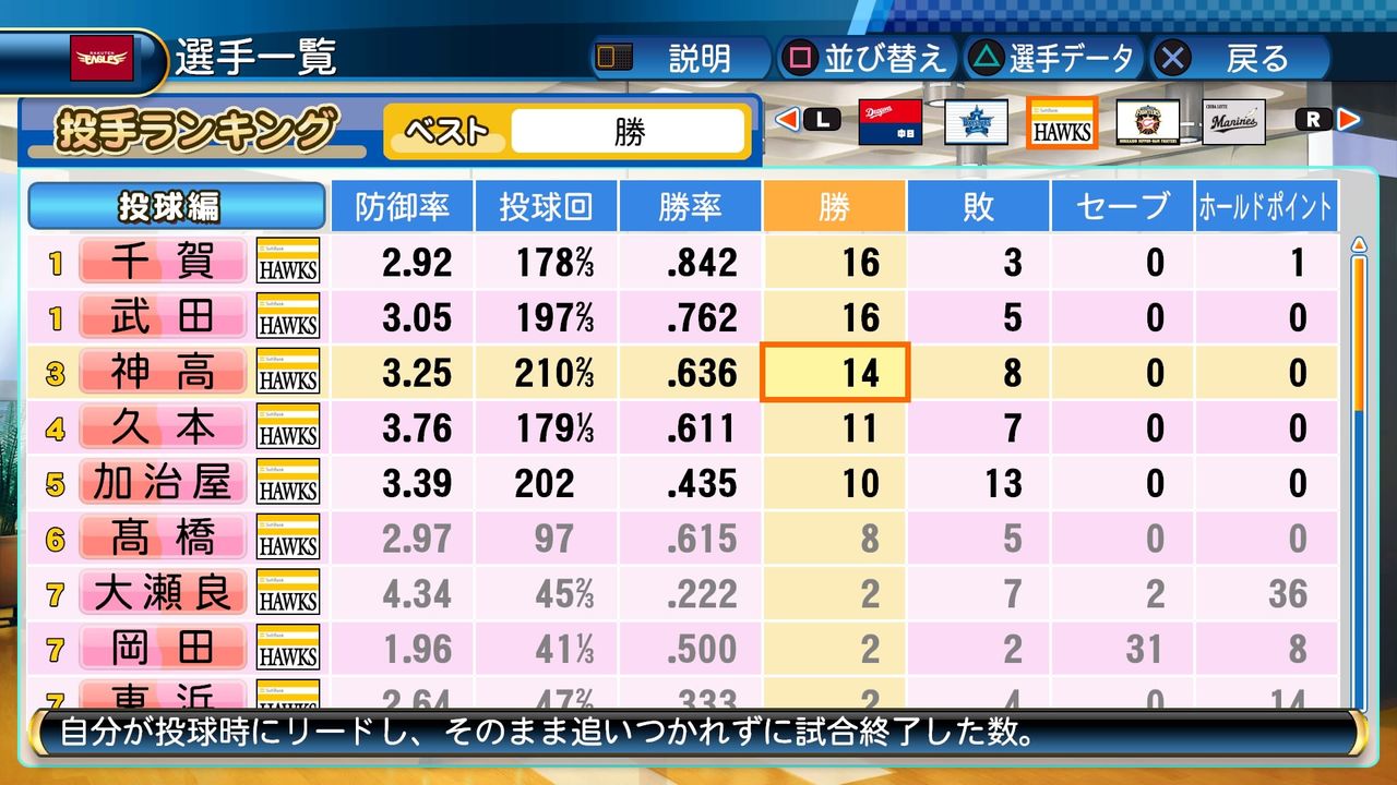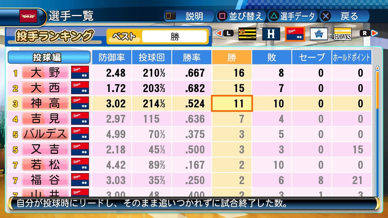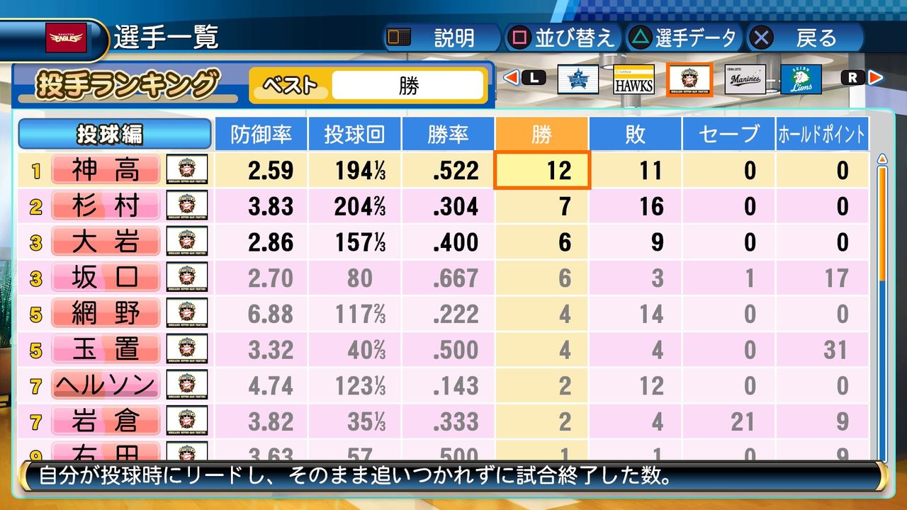 それでも神高と共にチーム内最多勝に輝いた。