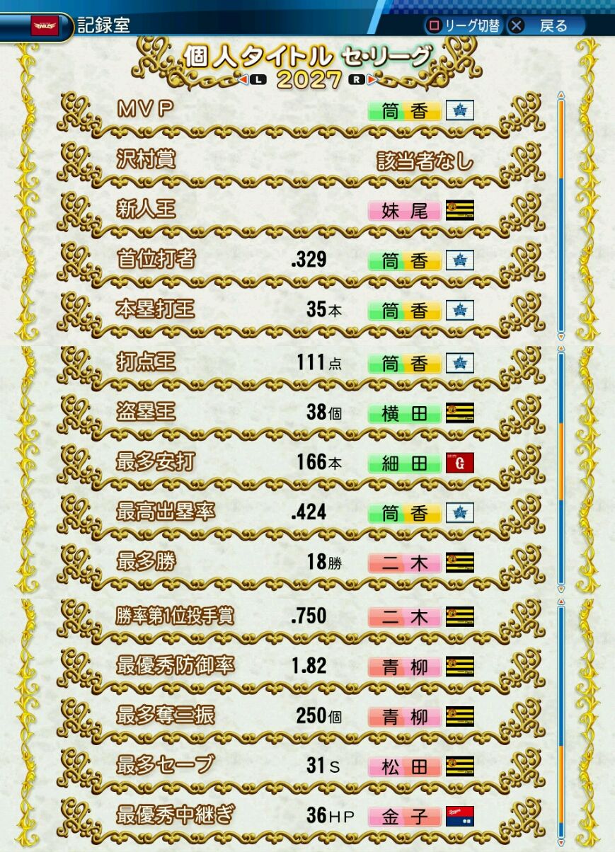 27先発登板207回 2.70 勝率.476 10勝11敗 完投12 完封4 QS21回(率77.8) HQS14回(率51.9)