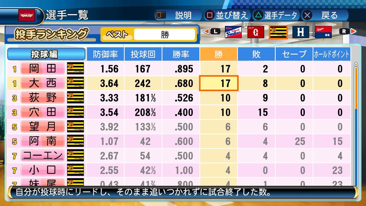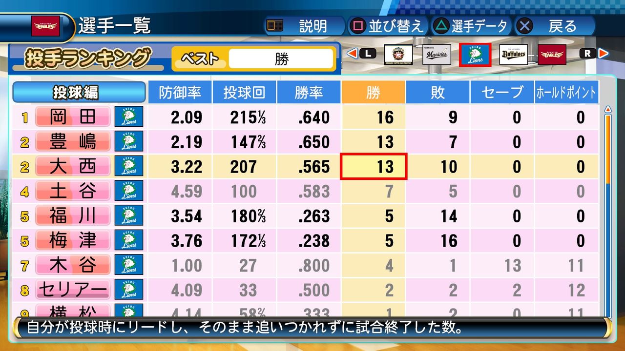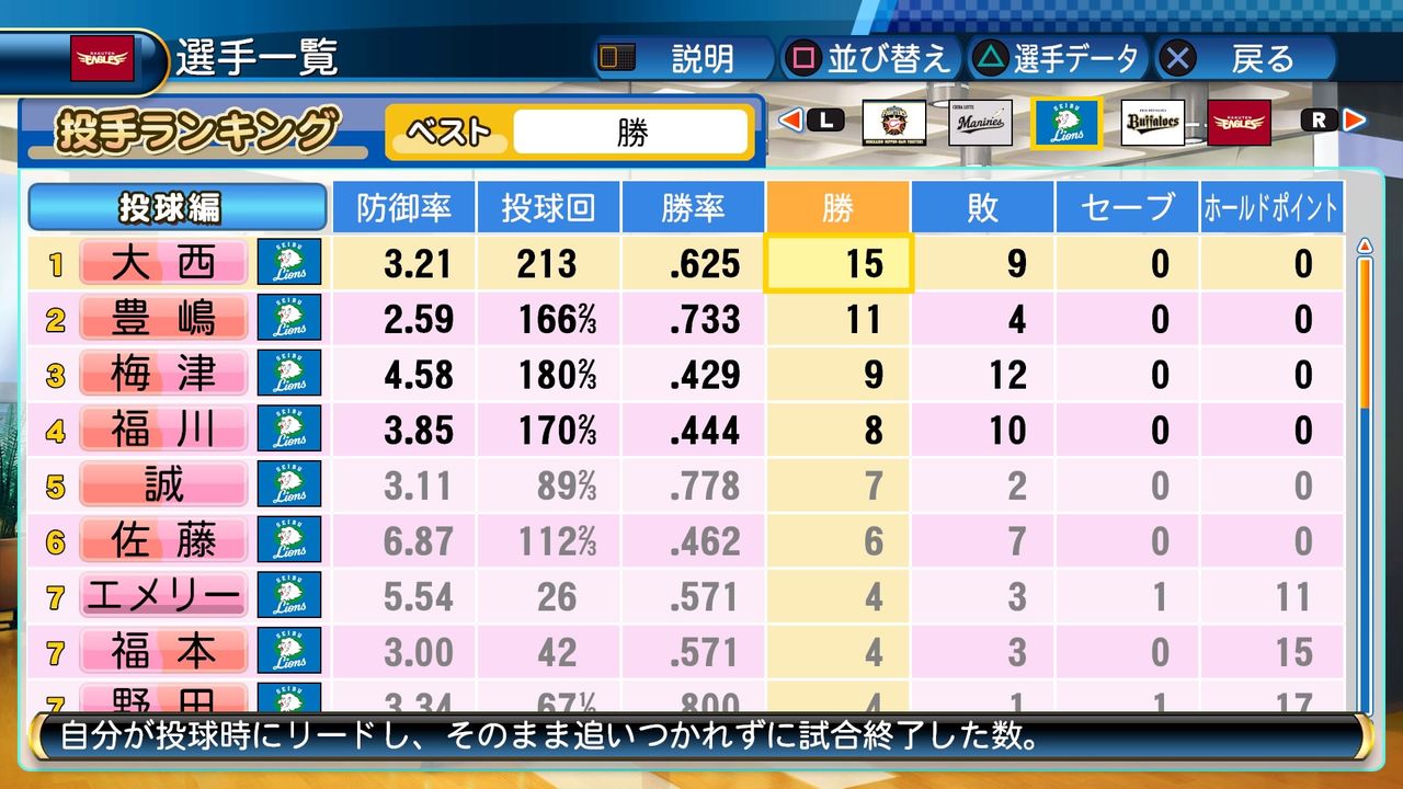 大西は抜群の安定感で1年目から15勝をあげる活躍を見せ、新人ながら最優秀防御率に輝いた。