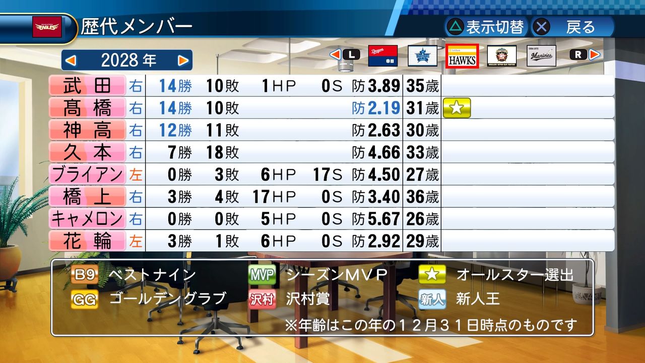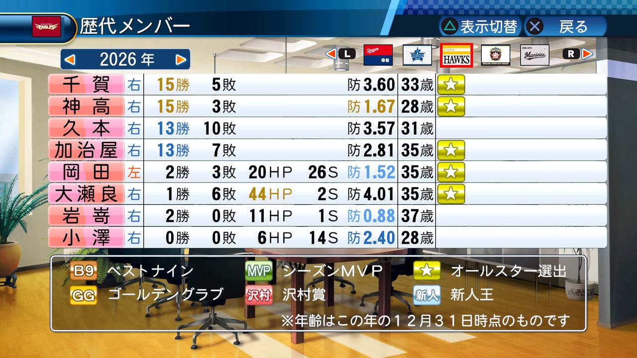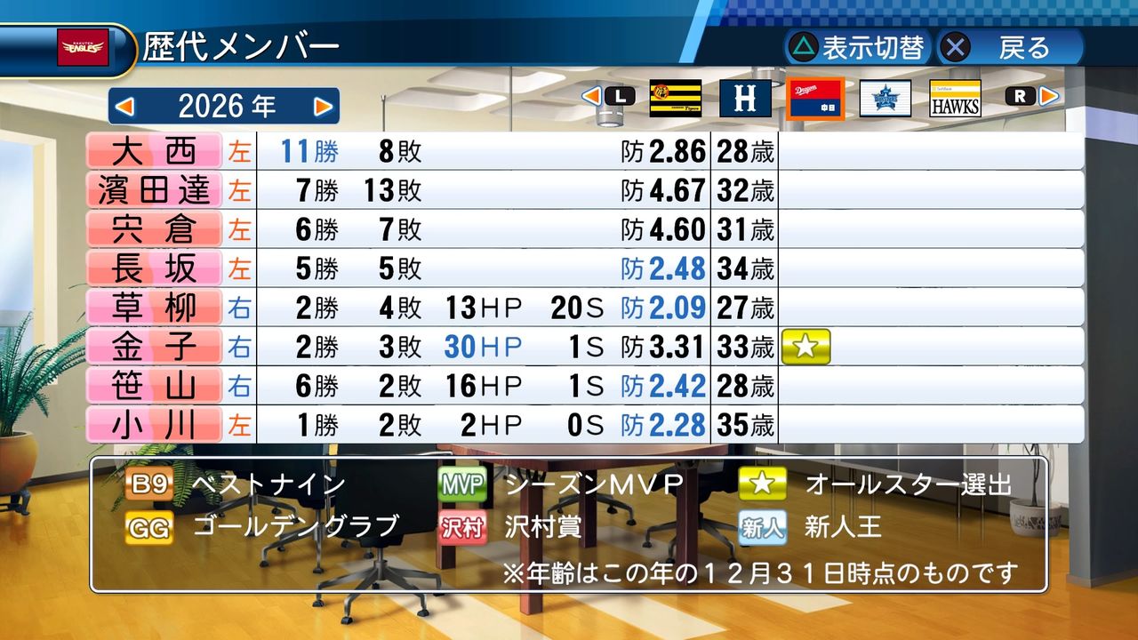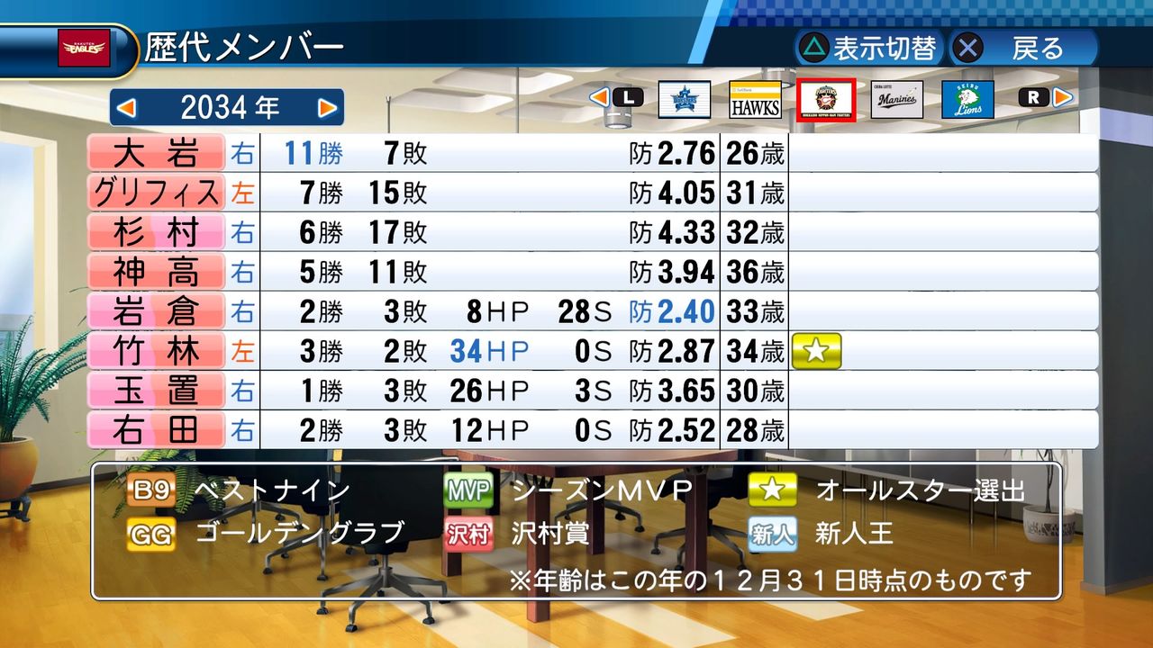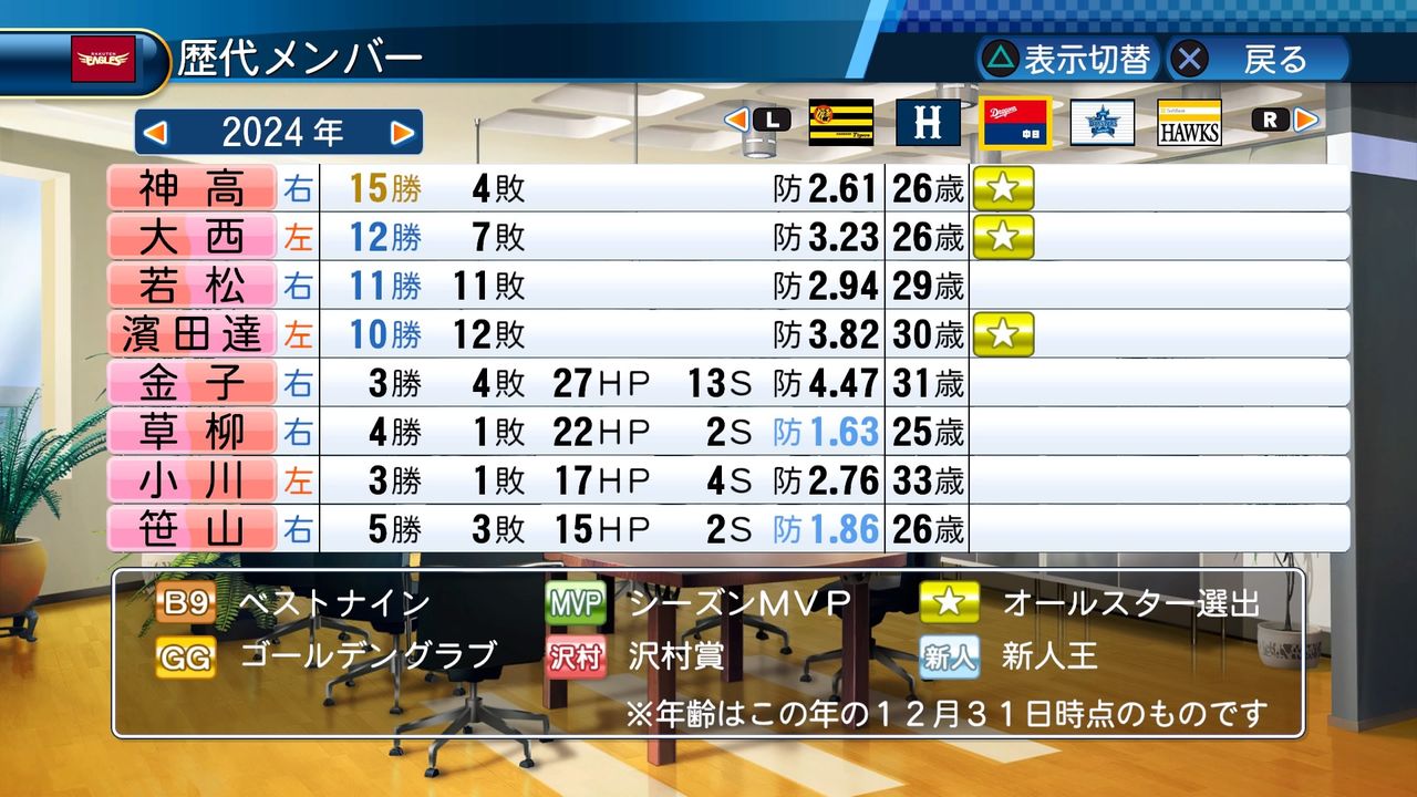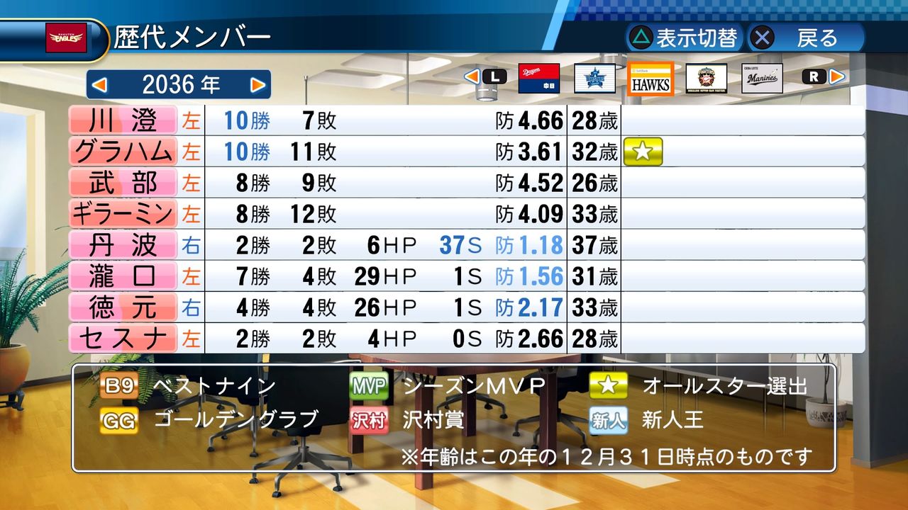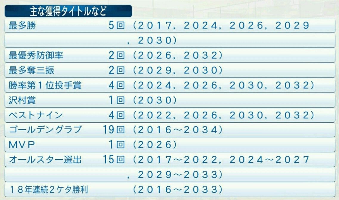 勝率1位投手 4回(2024、2026、2030、2032)