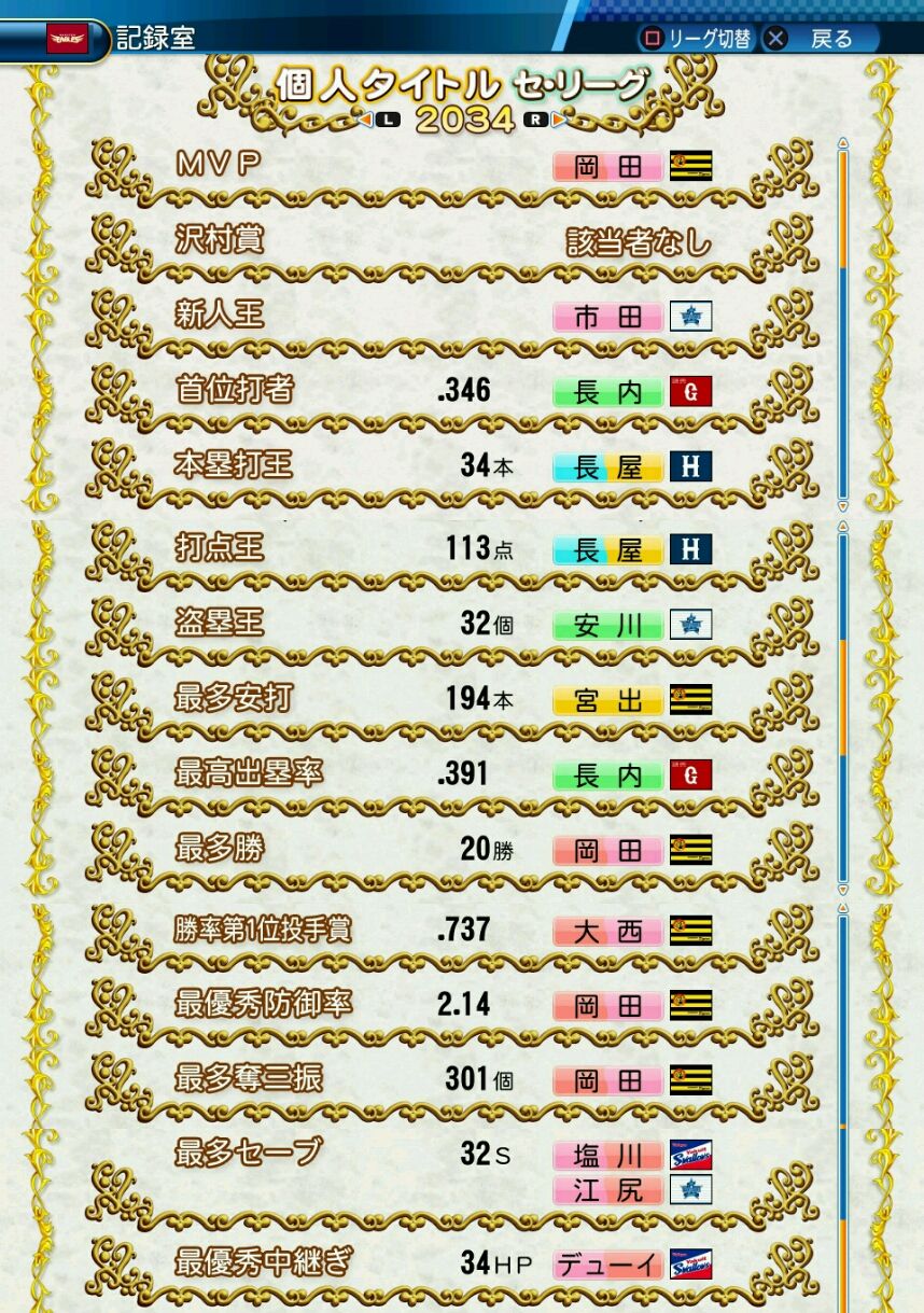勝率1位投手 1回(2034)