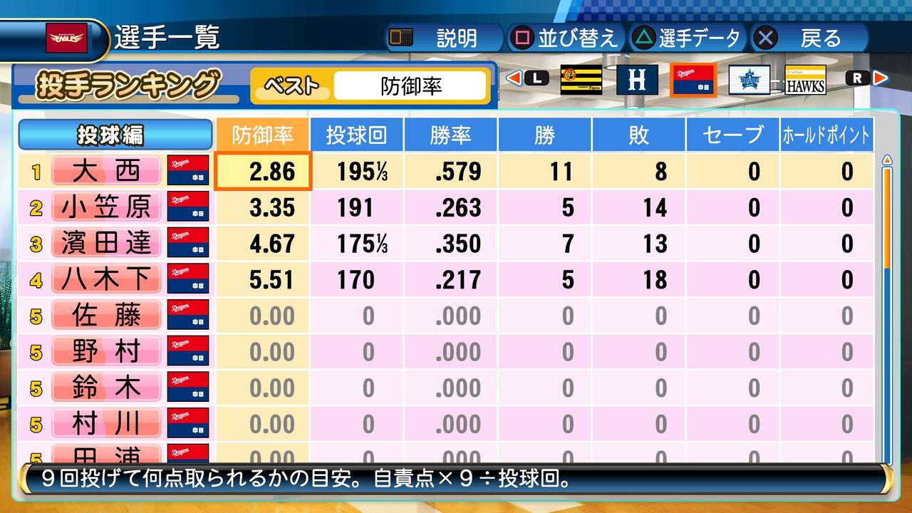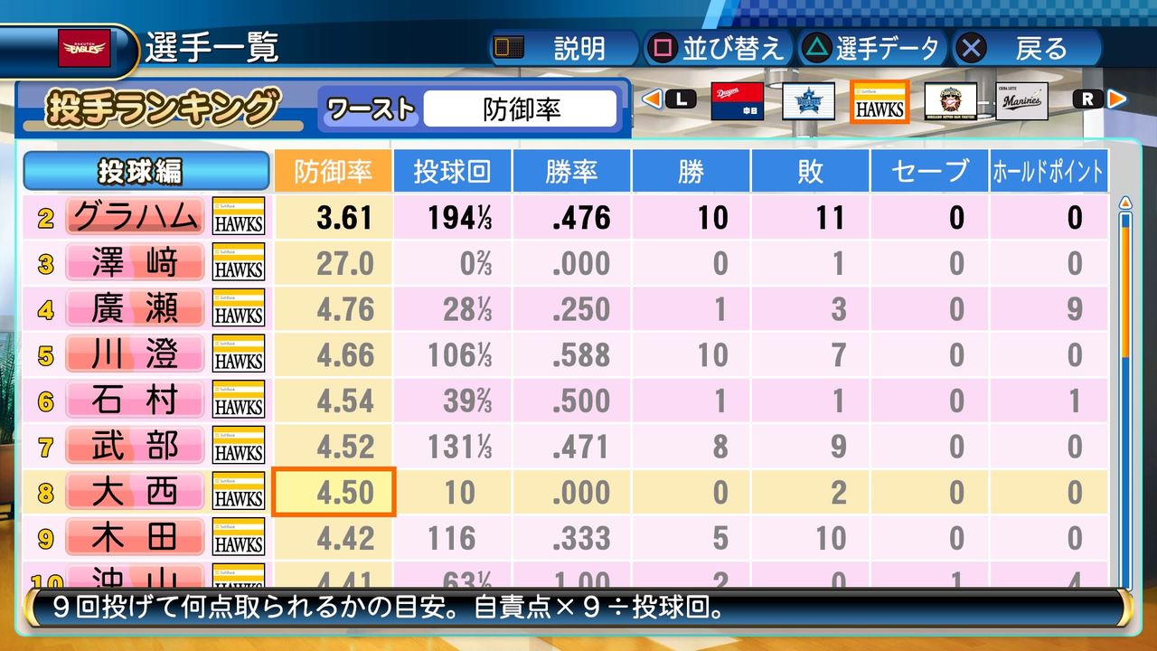 年々、防御率が悪くなっていく大西。