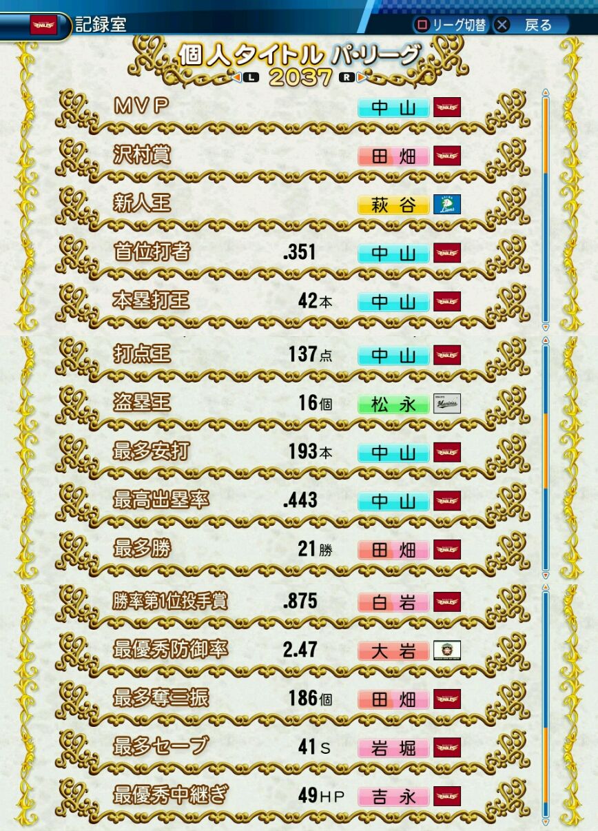 ゴールデングラブ 19回(2016~2034)
