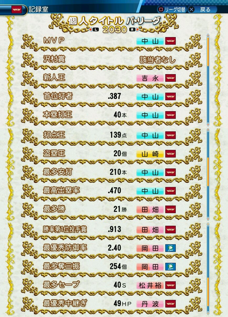 沢村賞 1回(2030)