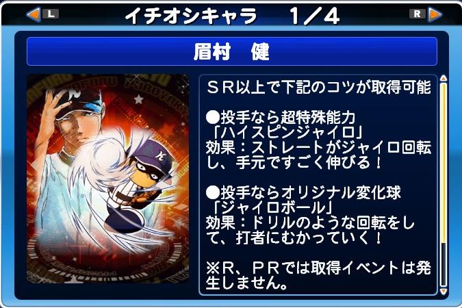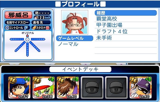 球速126km/h コE44 スS94 ジャイロボール スローカーブ3 怪童 回復C 本塁打厳禁 寸前× 勝ち運 短気 乱調 変幻自在