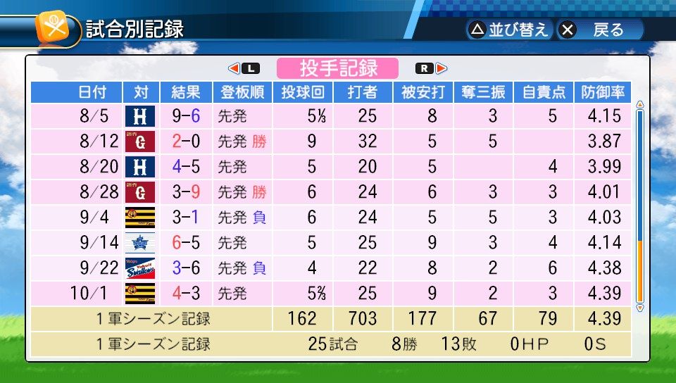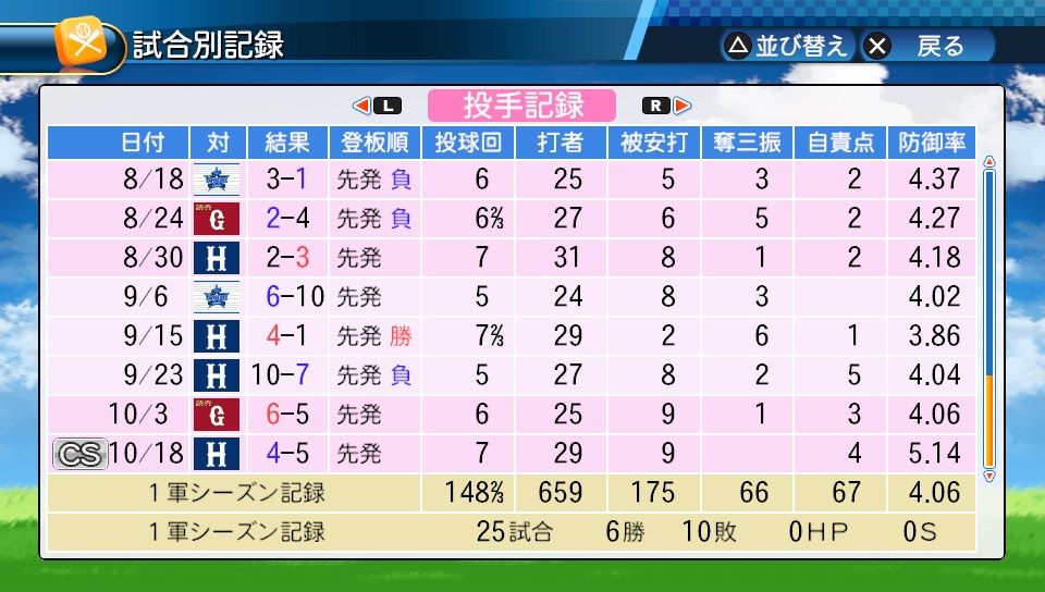 防御率は4点台に悪化させ6勝10敗と