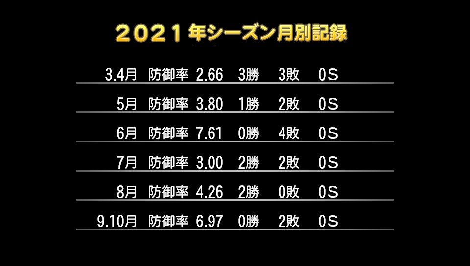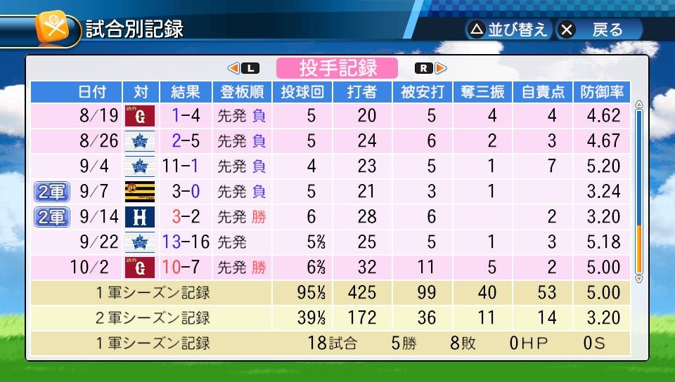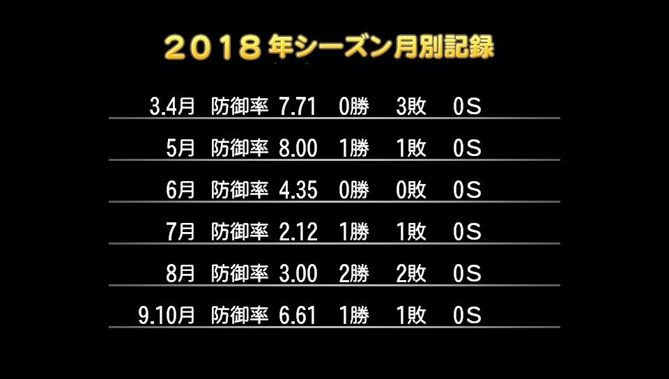 18登板 95回1/3 防5.00 勝率.385 5勝8敗 奪三振40 完封0 完投0