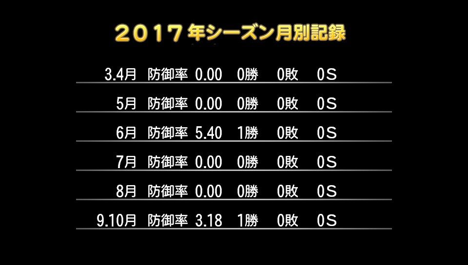 3登板 15回2/3 防4.60 勝率1.00 2勝0敗 奪三振9 完封0 完投0