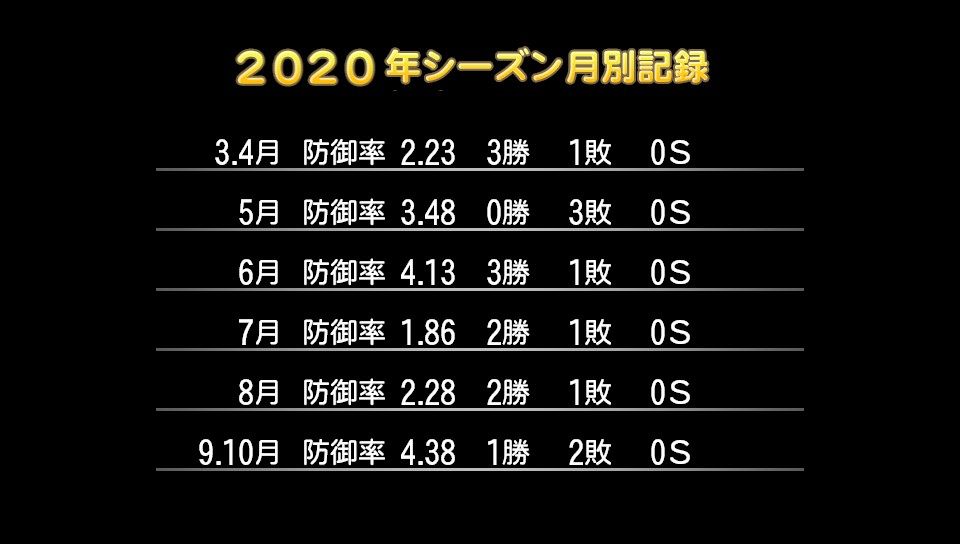 18登板 107回2/3 防4.60 勝率.714 10勝4敗 奪三振50 完封0 完投0