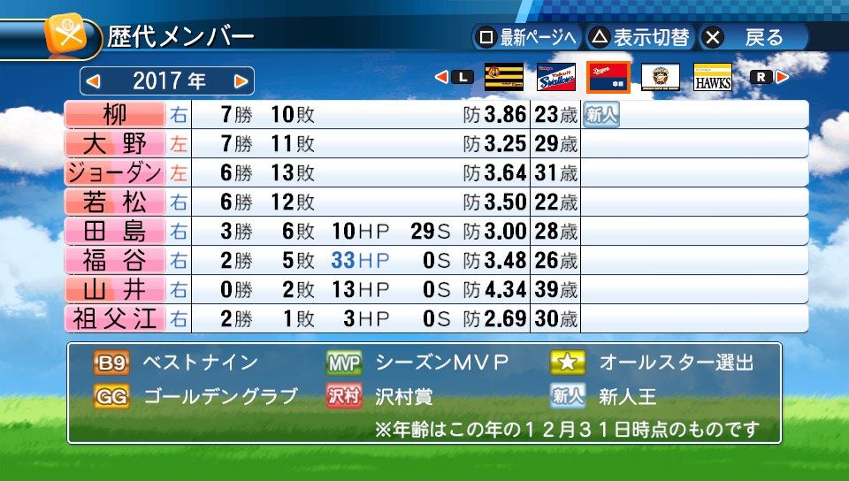 2017年度選手データ版