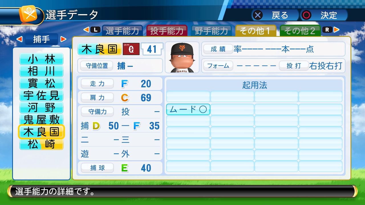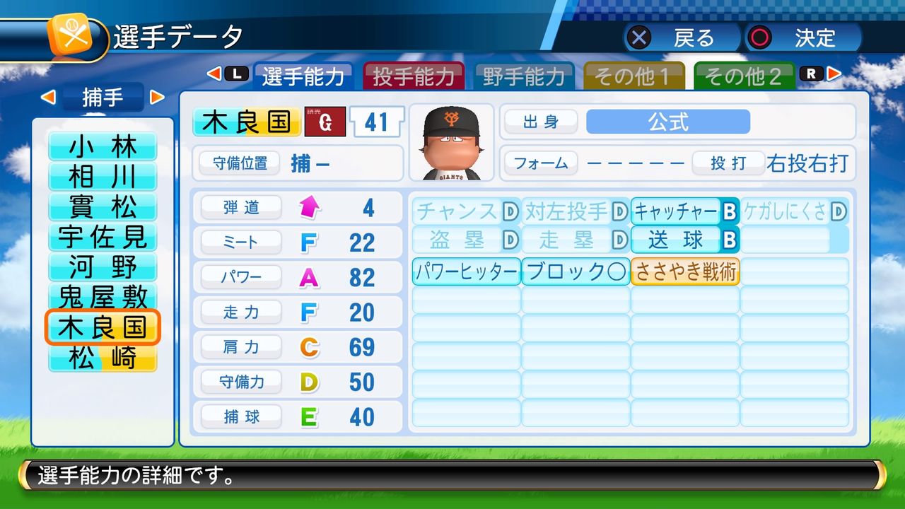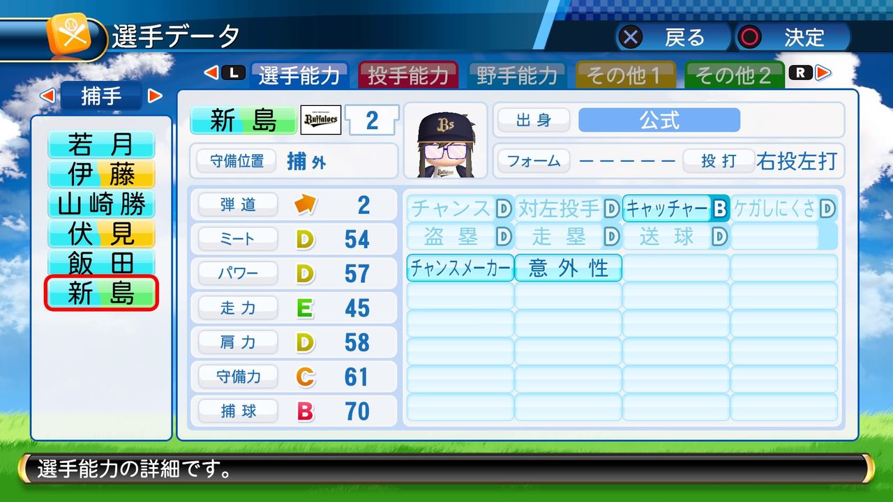 キャッチャーB 送球B パワーヒッター ブロック○ ささやき戦術
