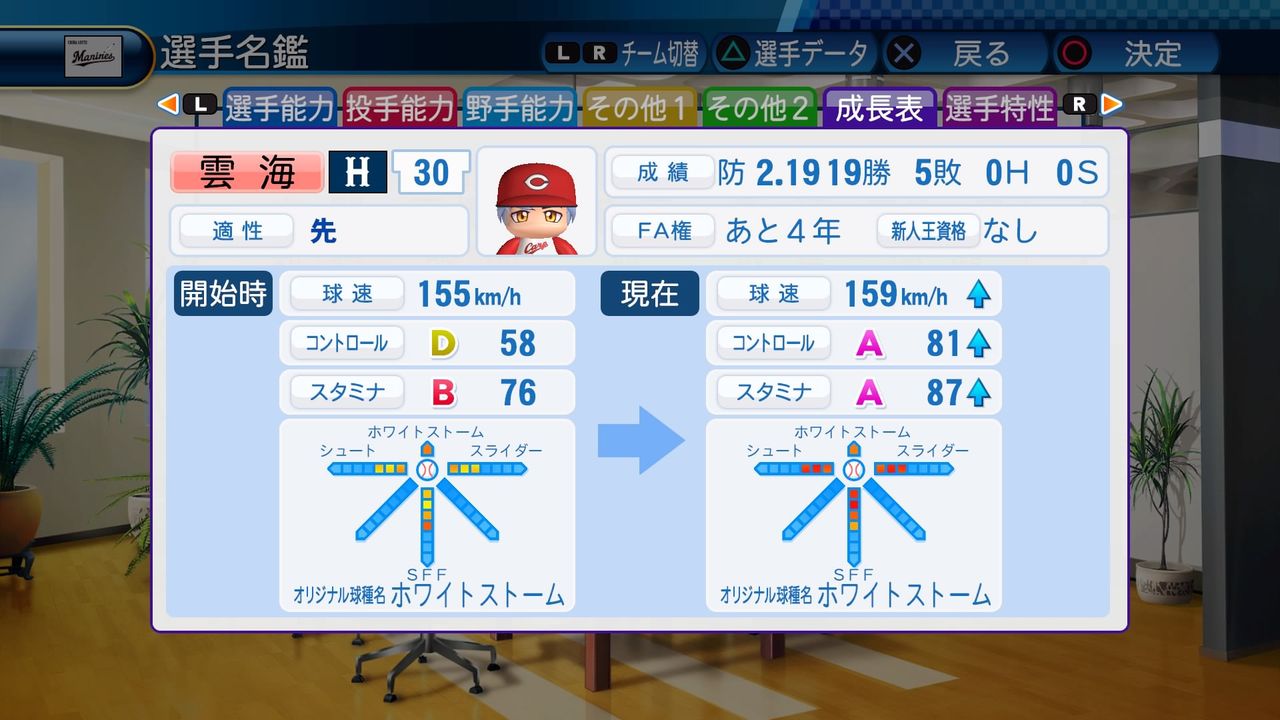 球速155km/h コンD58 スタB76 ホワイトストーム シュート3 SFF4 スライダー3