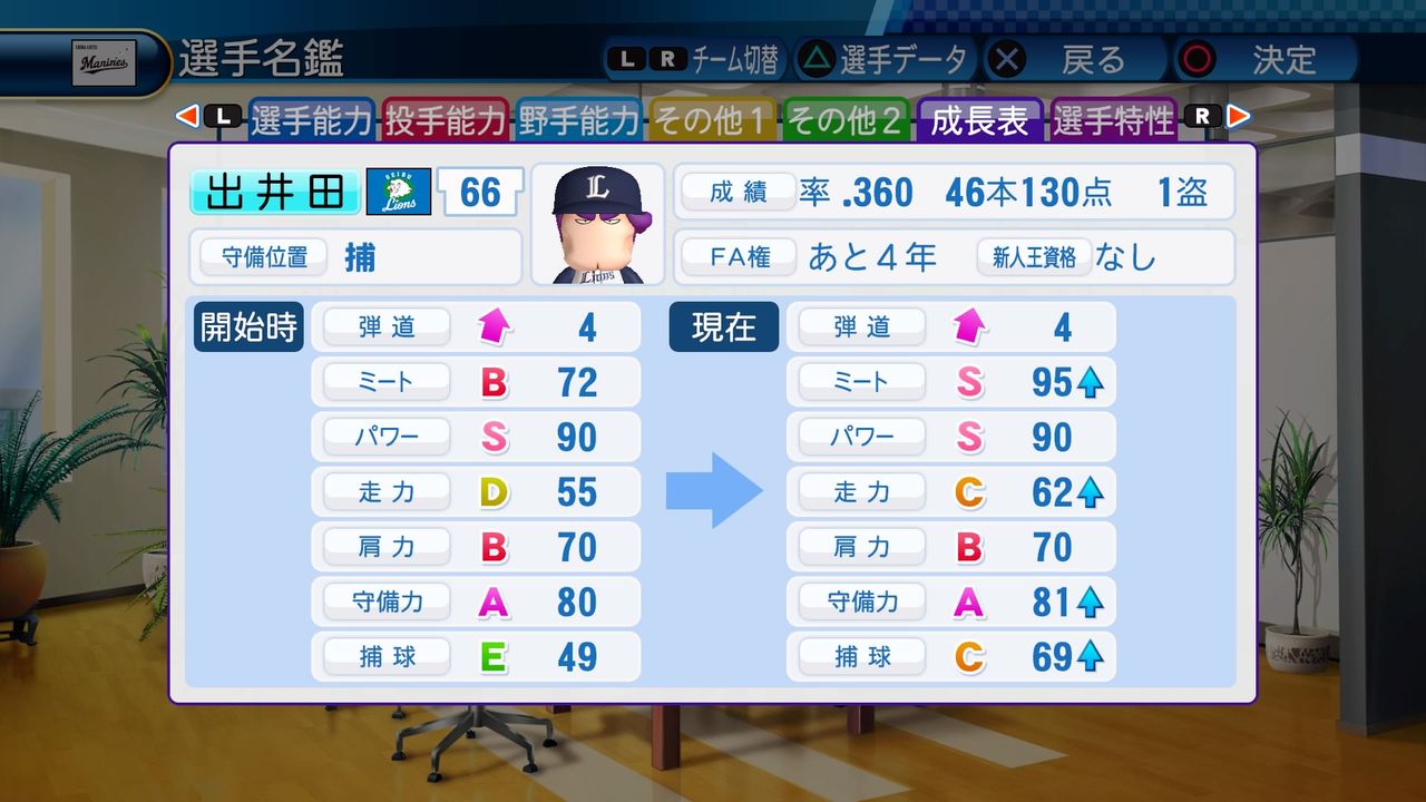 盗塁B 送球A 逆境○ 守備職人