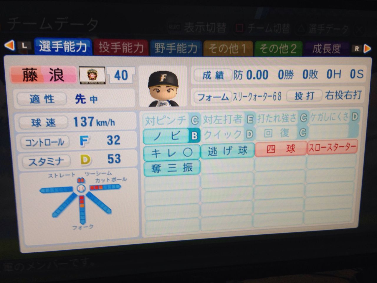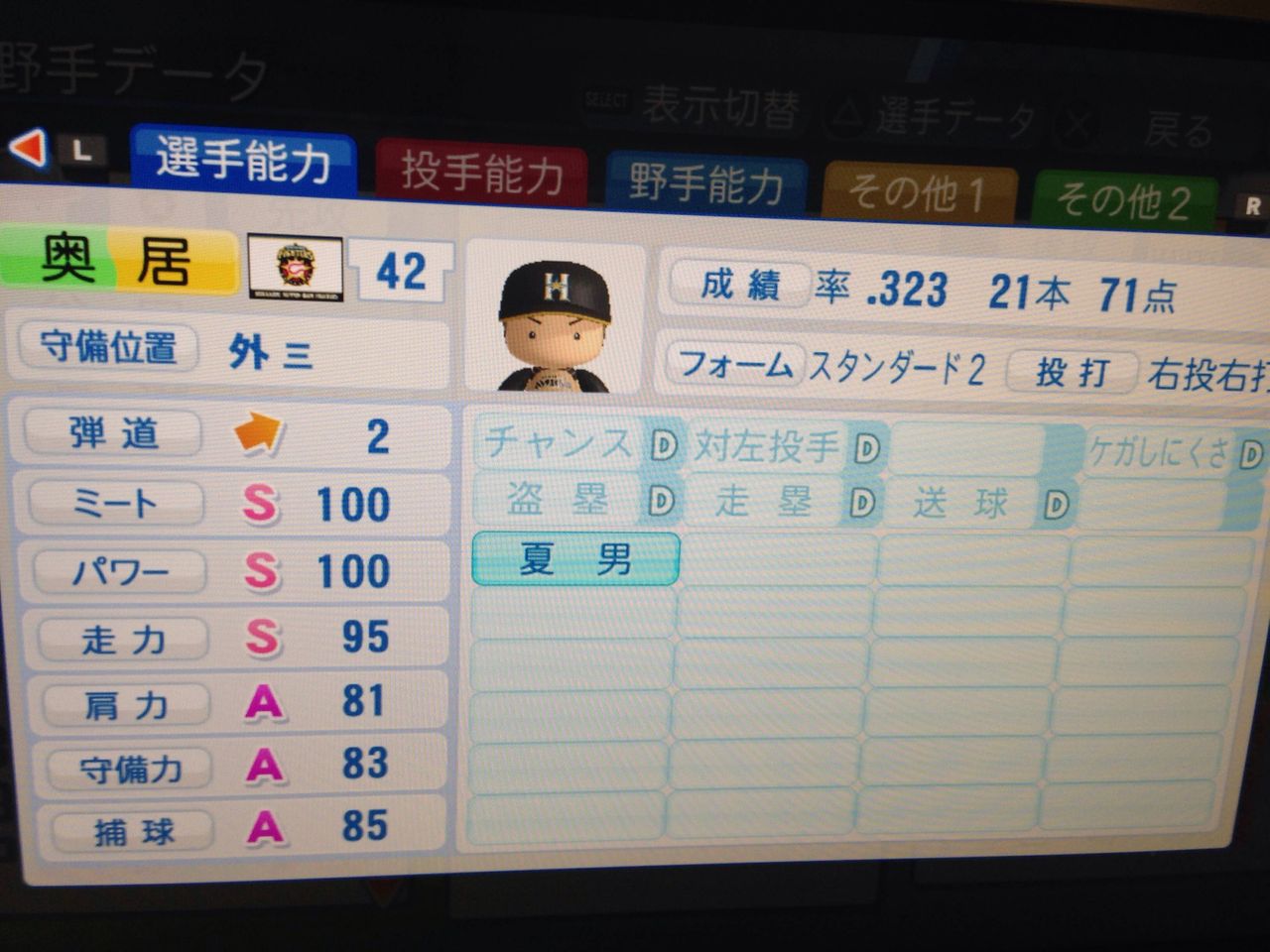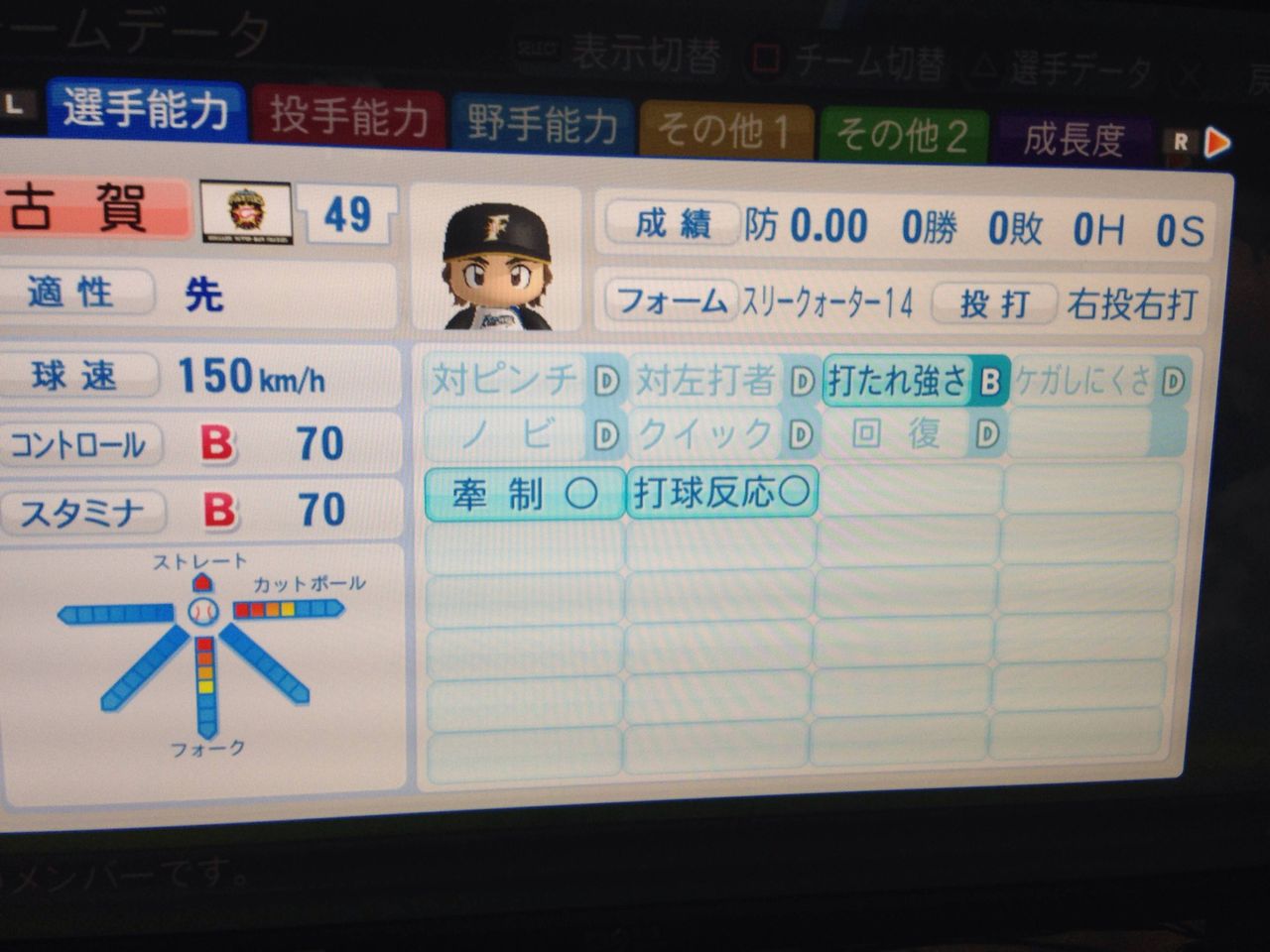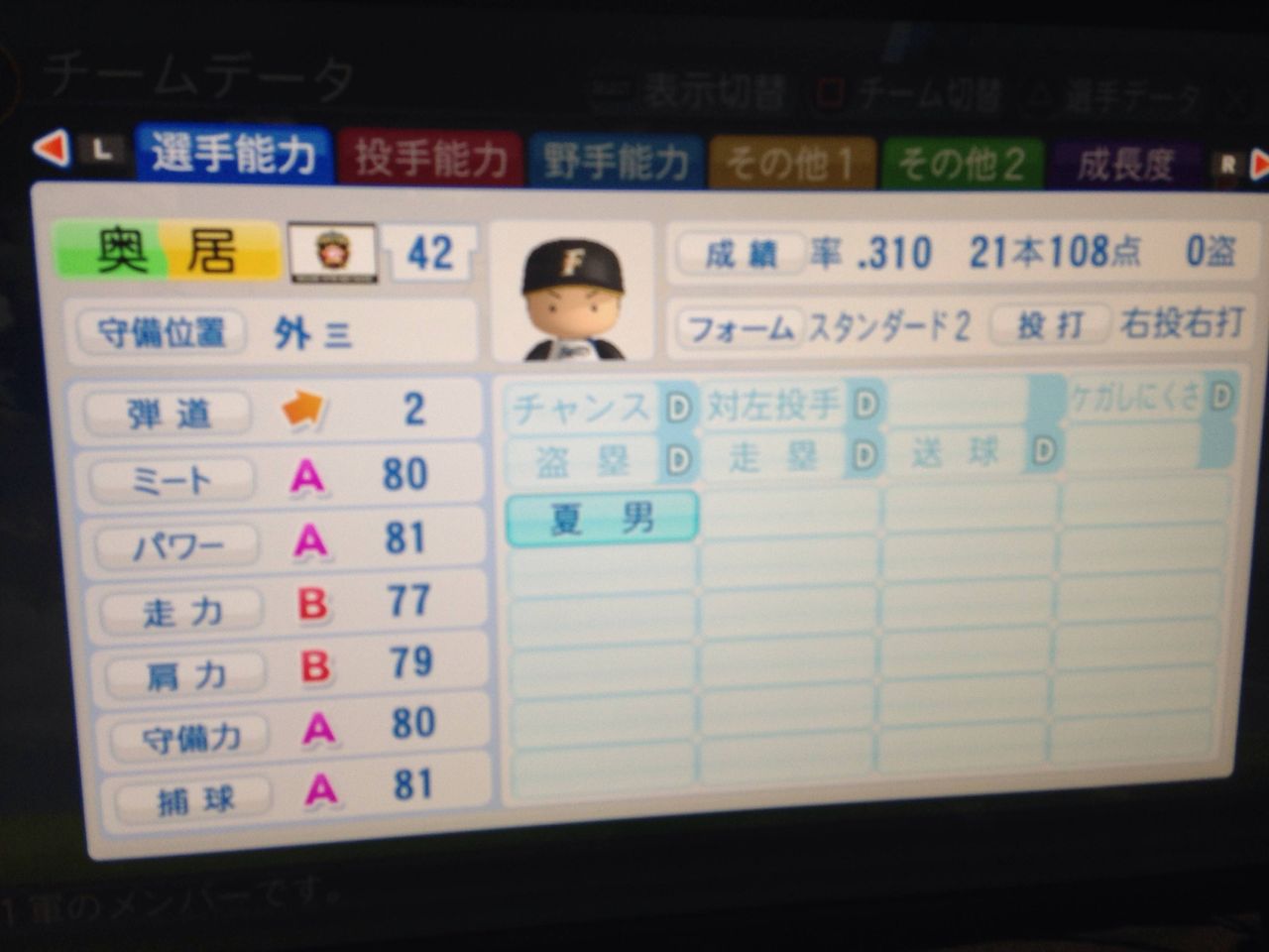 選手:サクセスキャラ