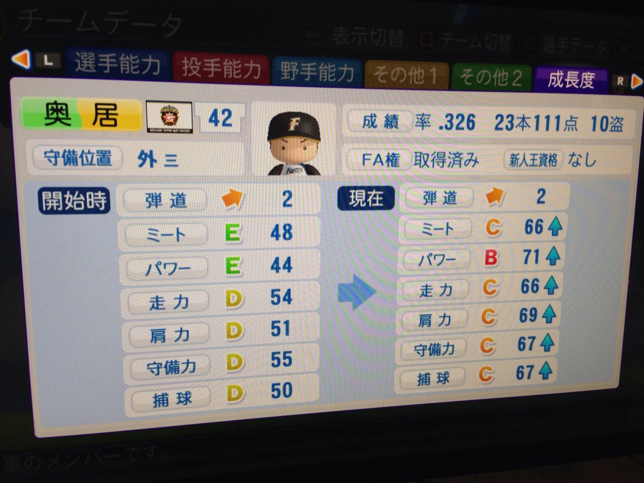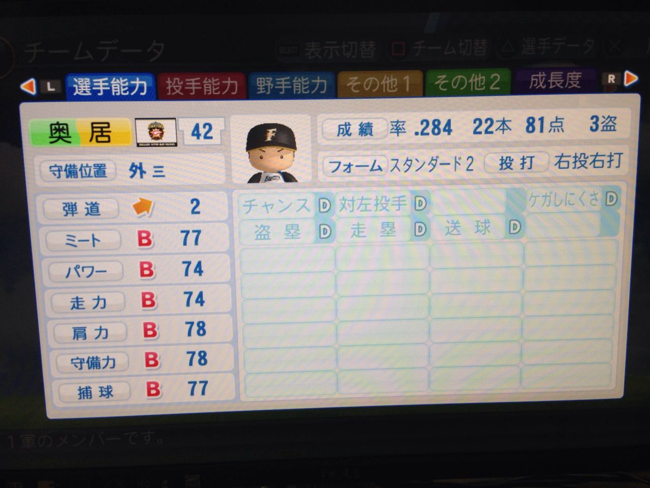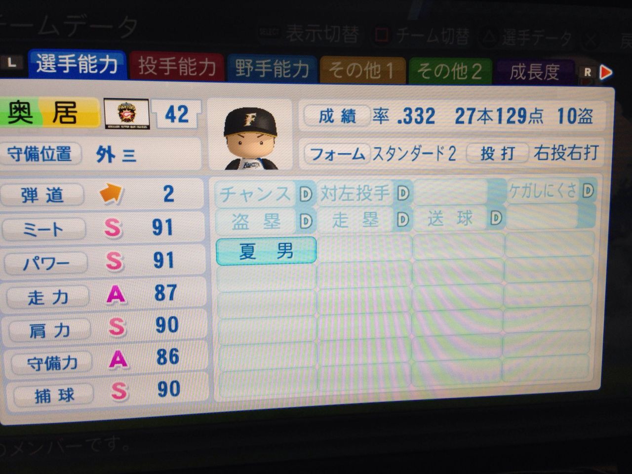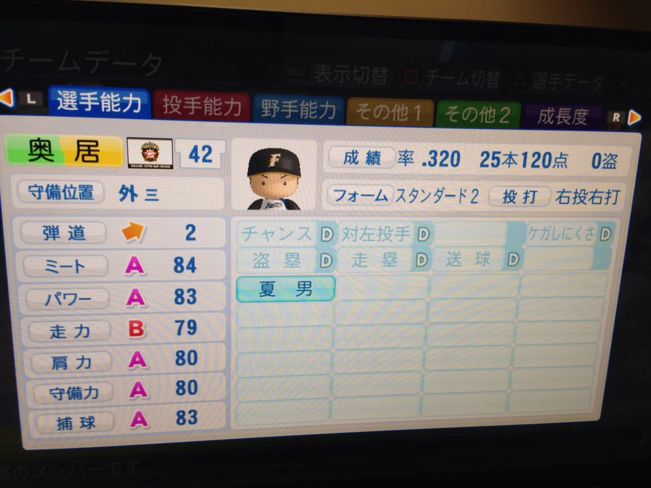 選手:サクセスキャラ