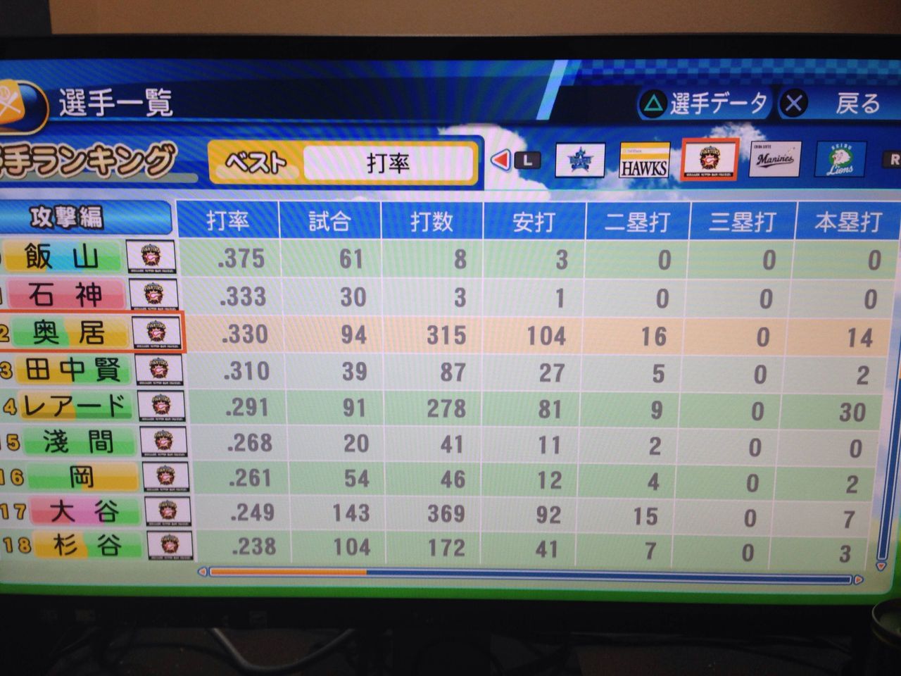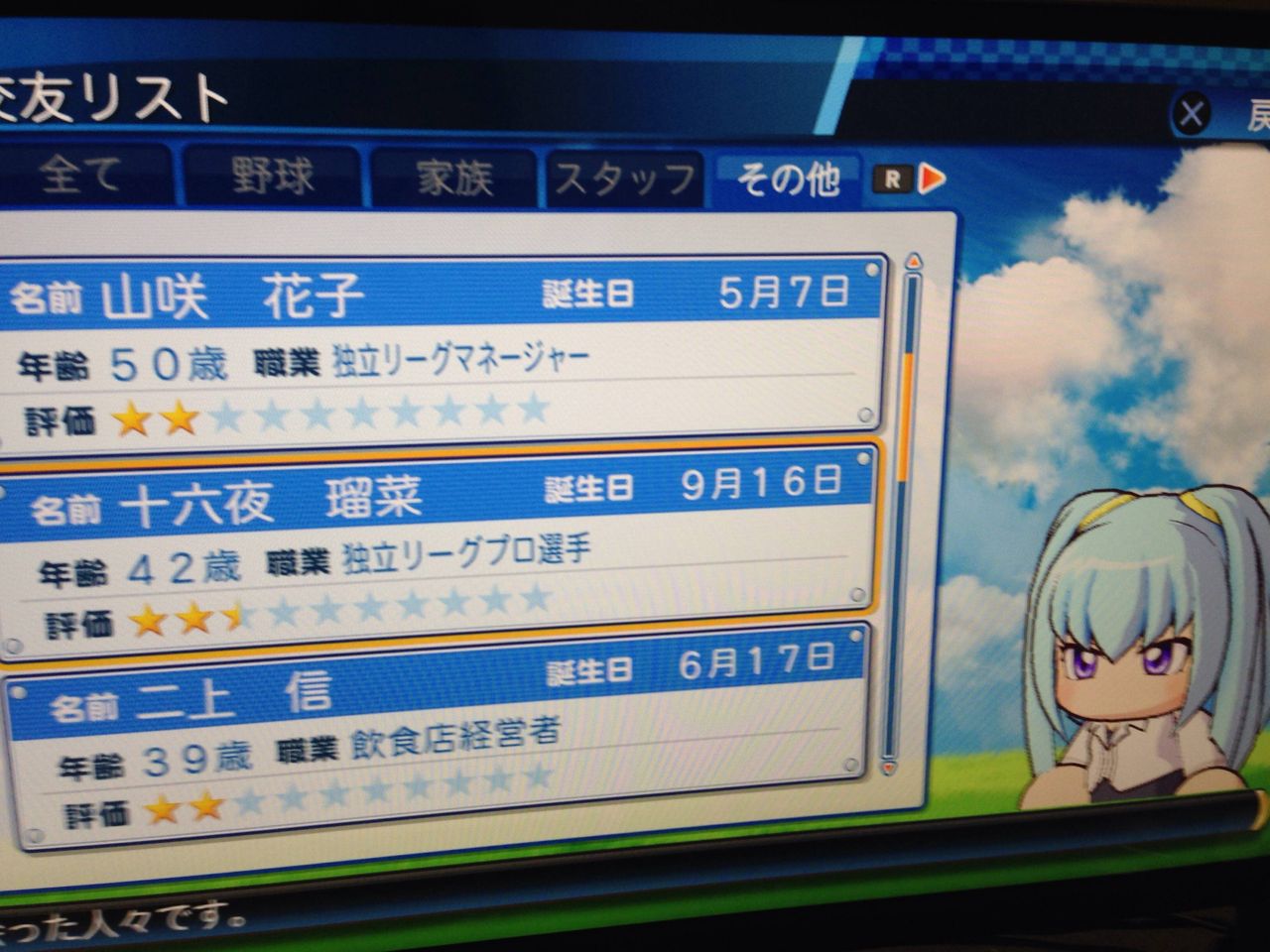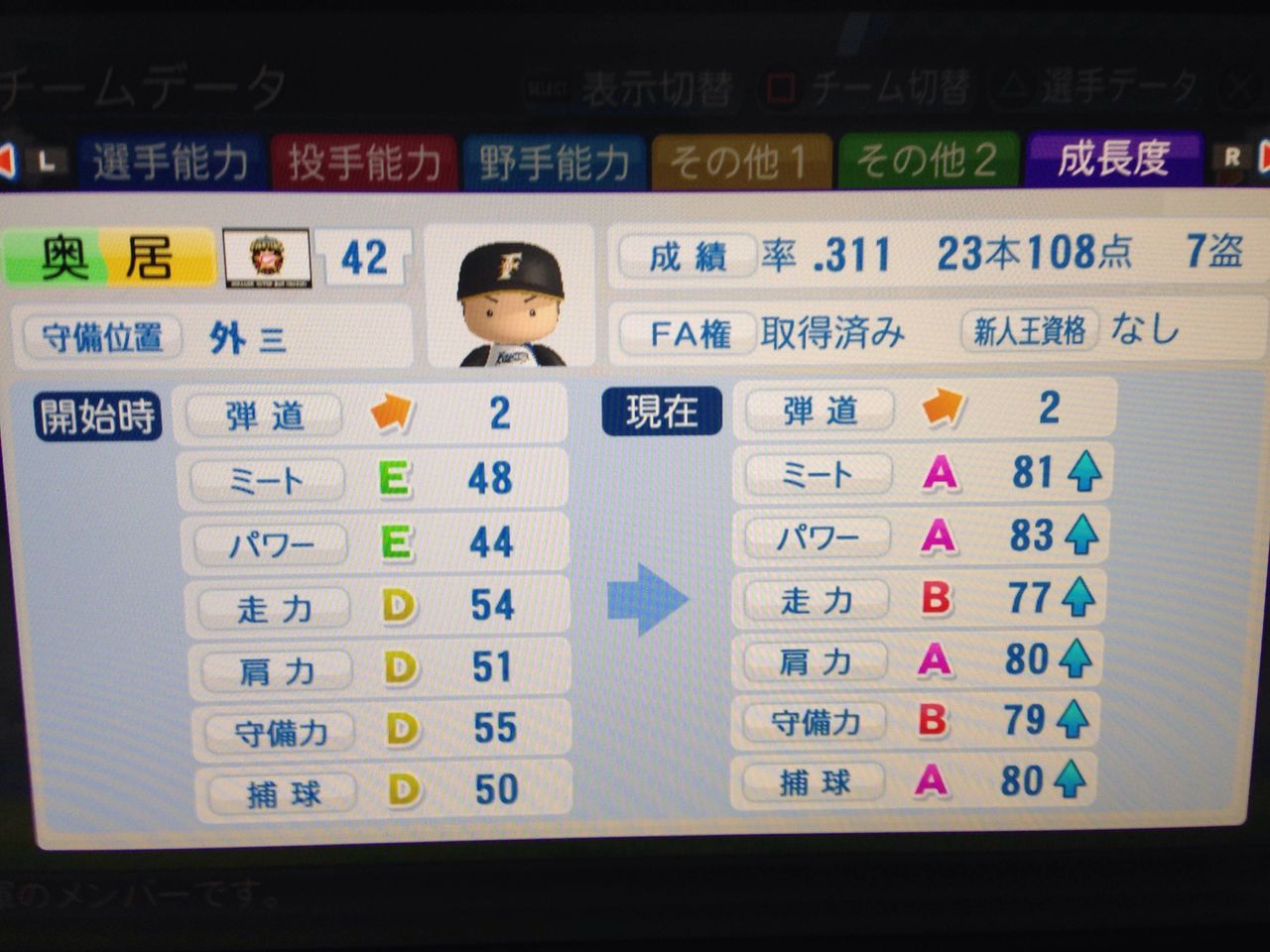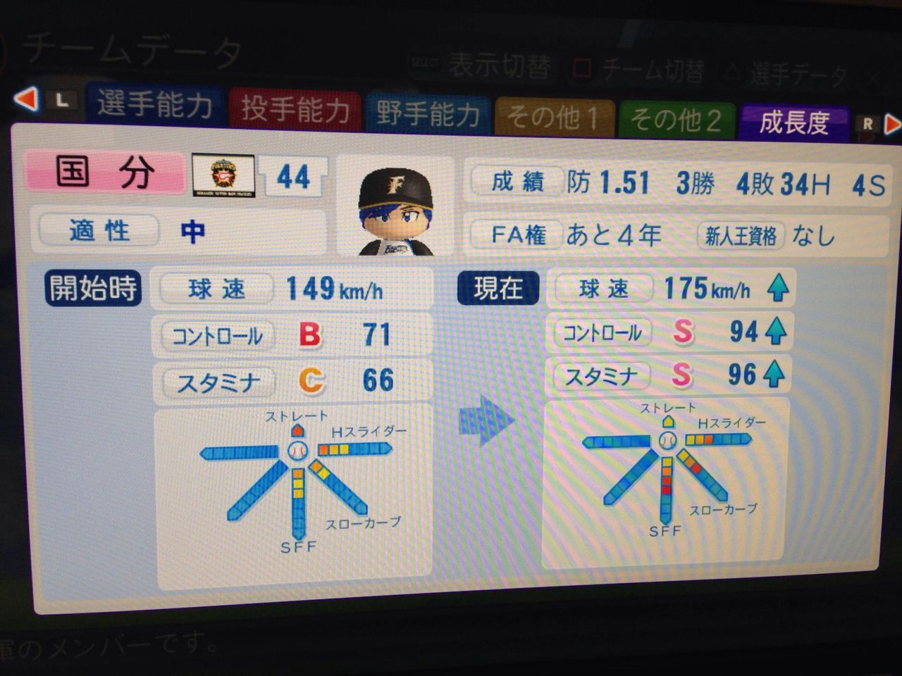 選手:サクセスキャラ