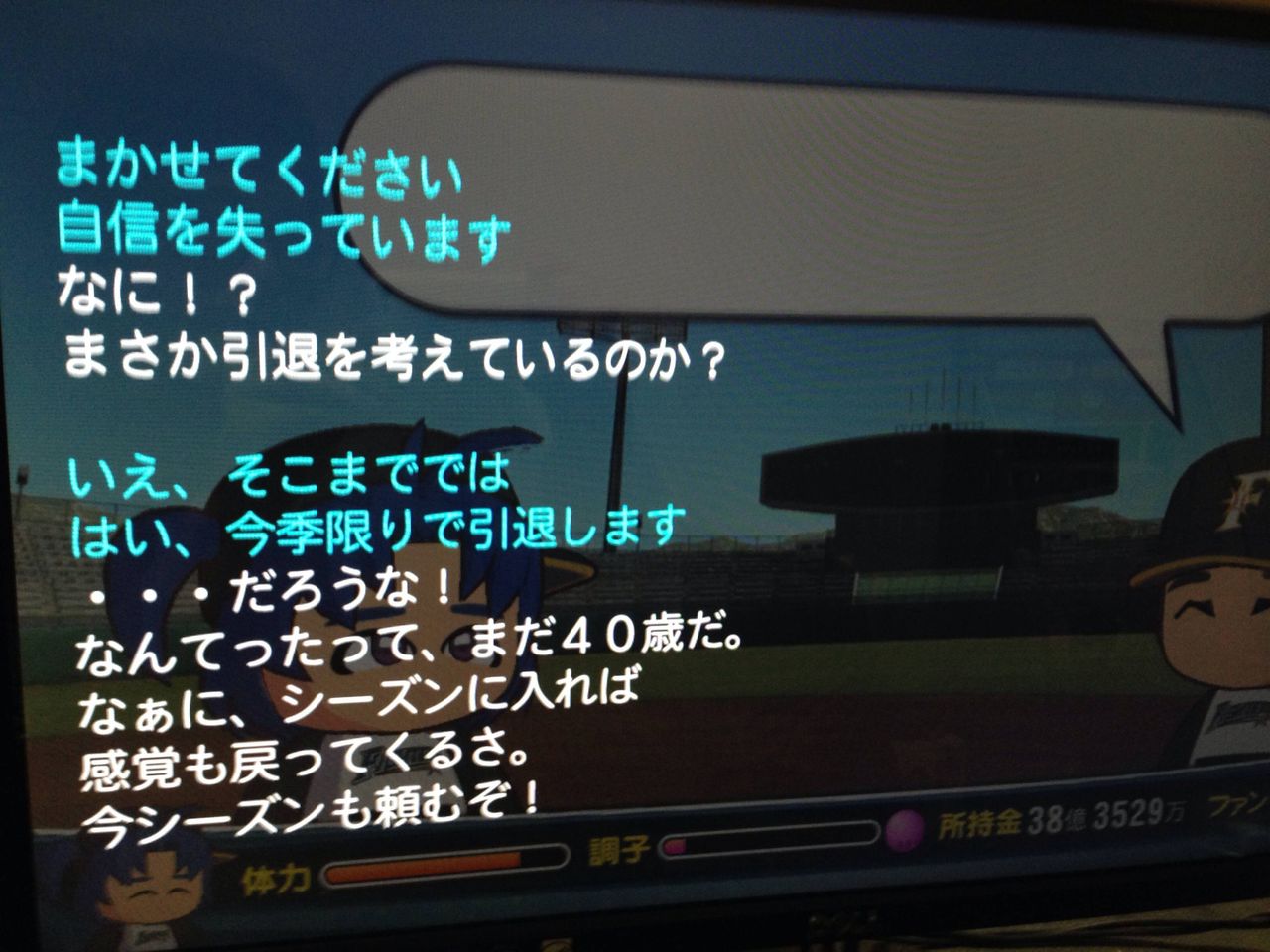 契約更改時1,100万→5,500万の提示を受けるも樹選手に何かが舞い降りてゴネる。