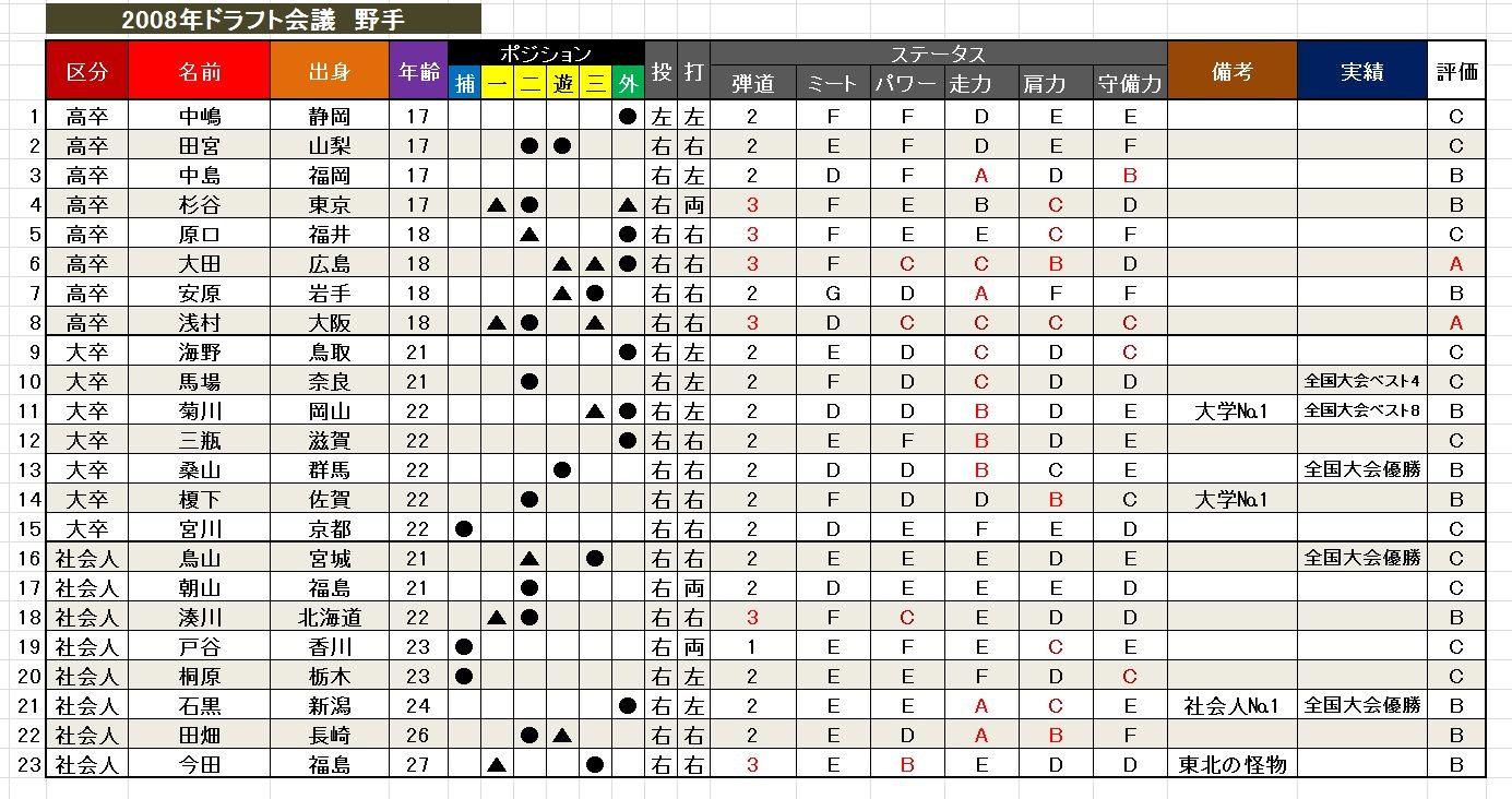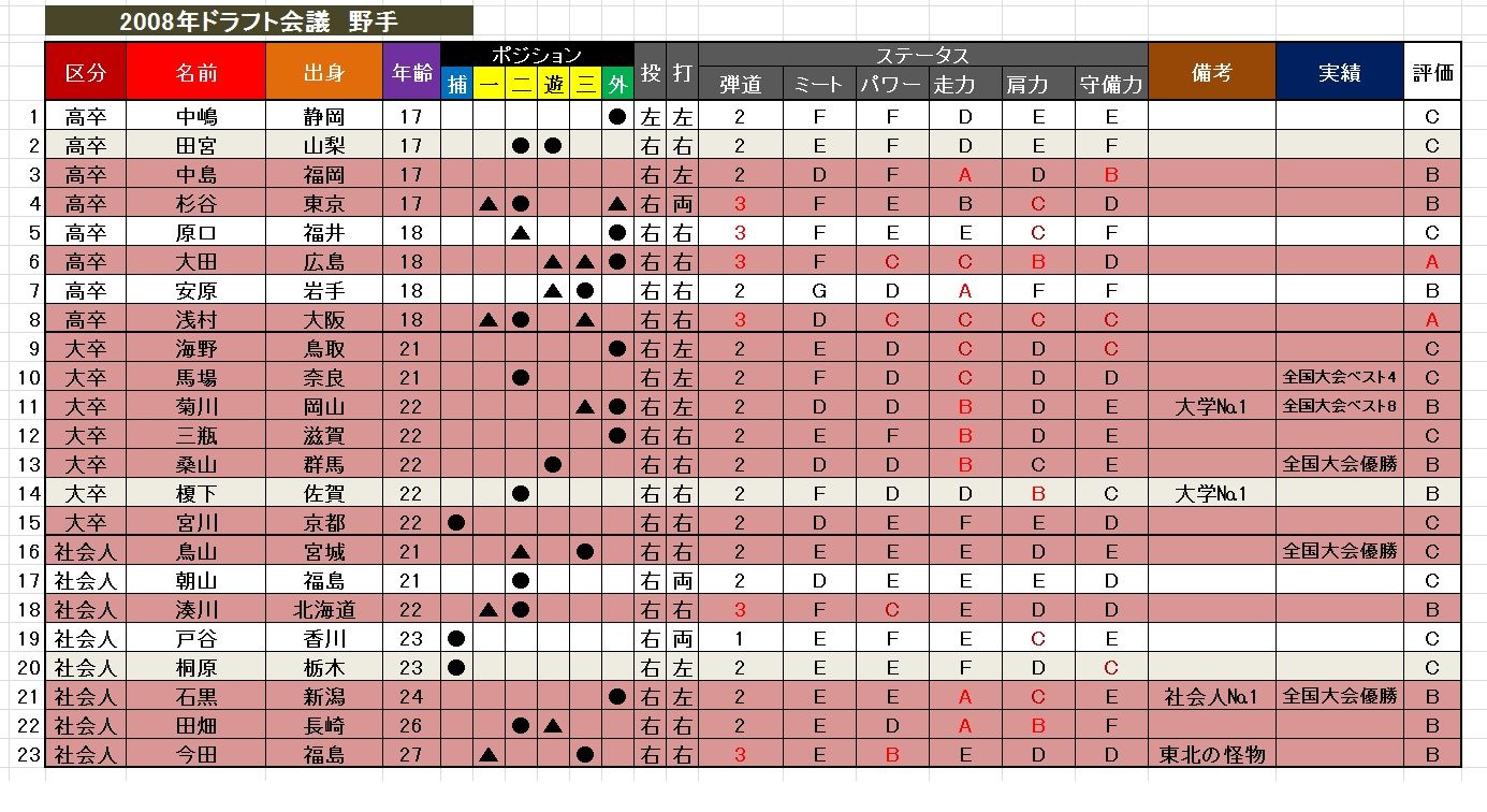 先に2008年のドラフト候補選手リストを貼っておきますね