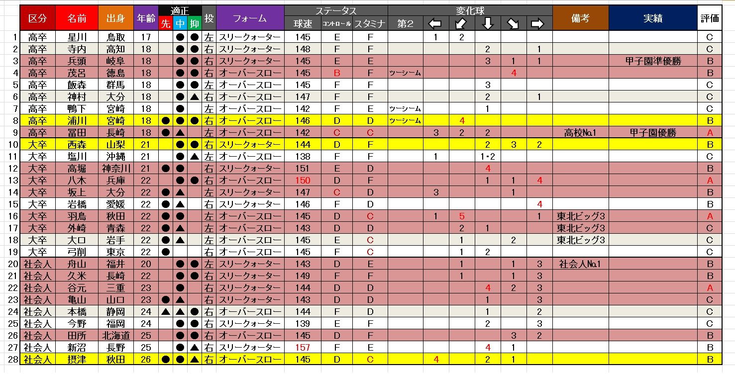 代理人「今年は投手(架空)にスペックが高いのが目立ちますね