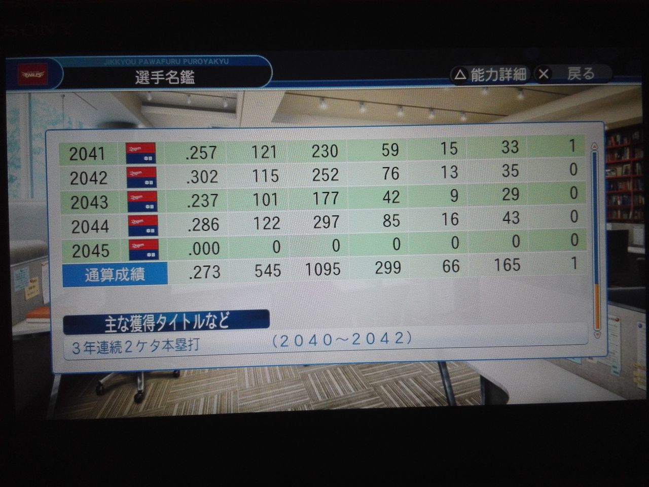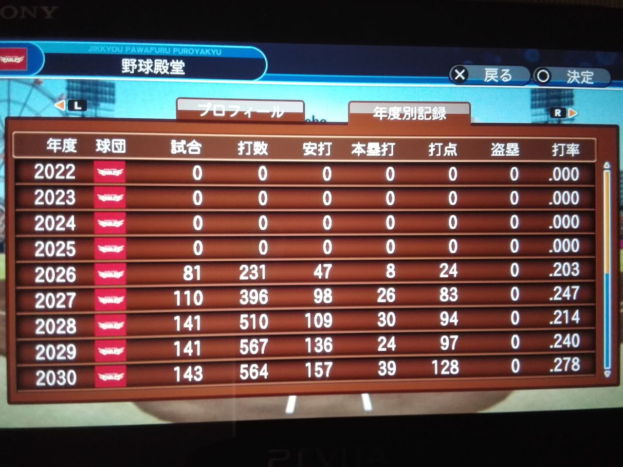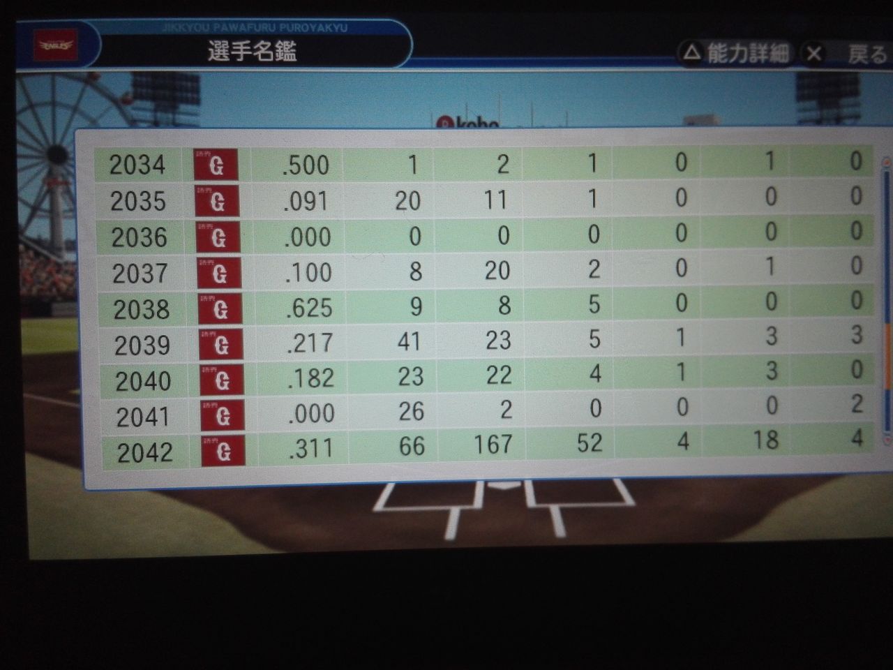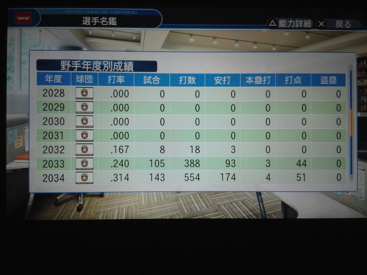 32歳の2034年には.303 43本 124点 3盗の成績で本塁打王、打点王の2冠を獲る そして2037年、メジャーへ
