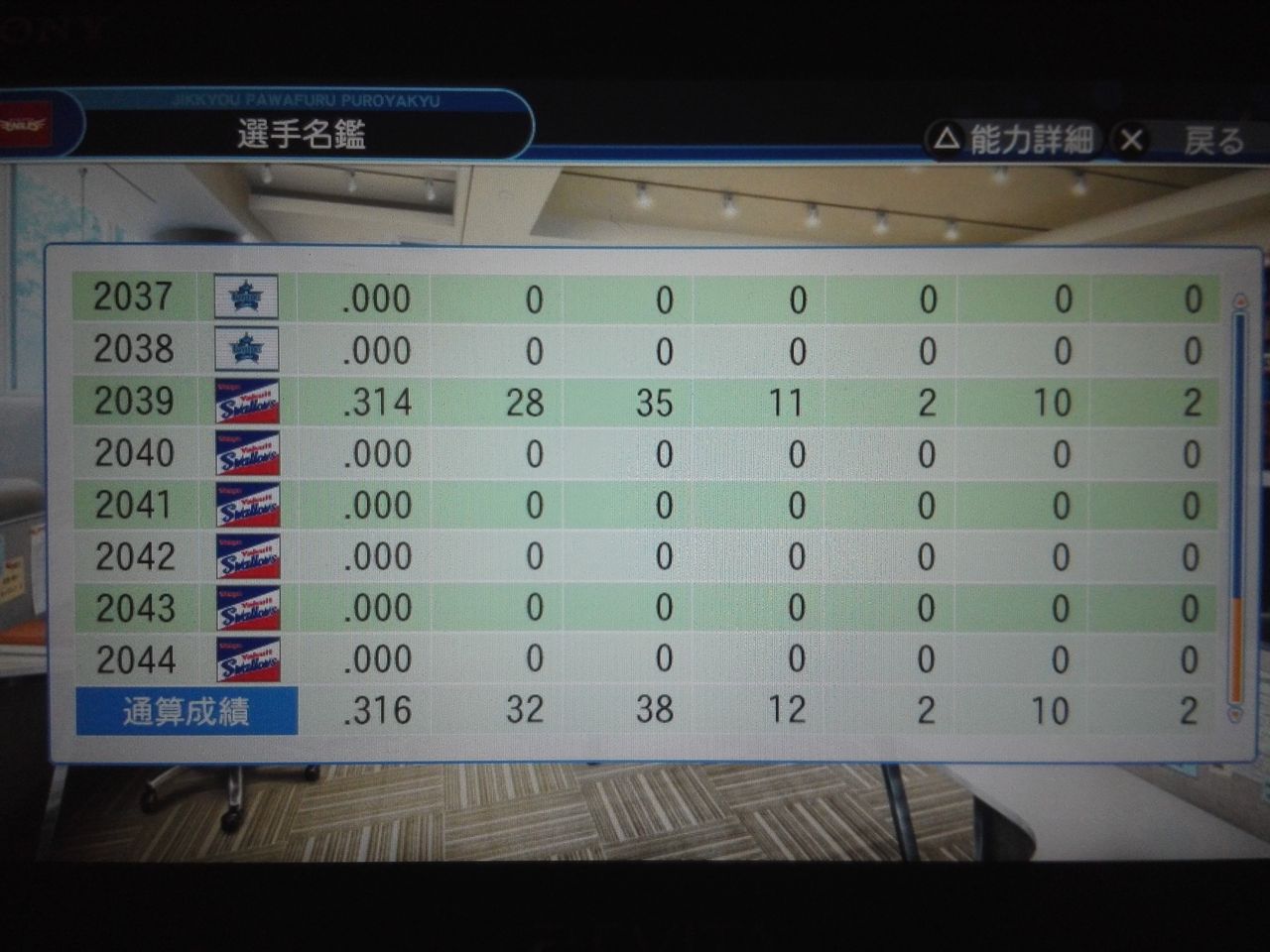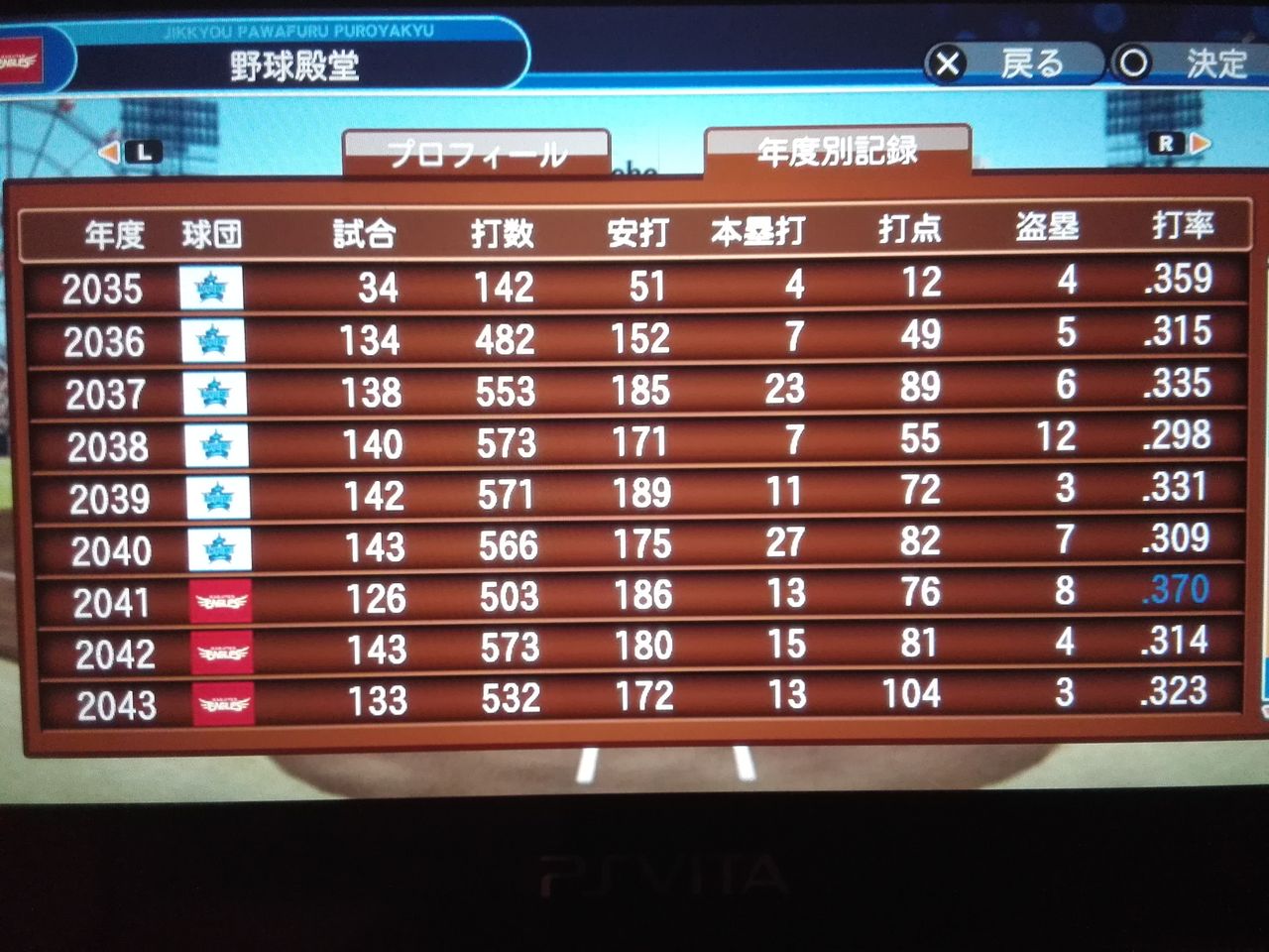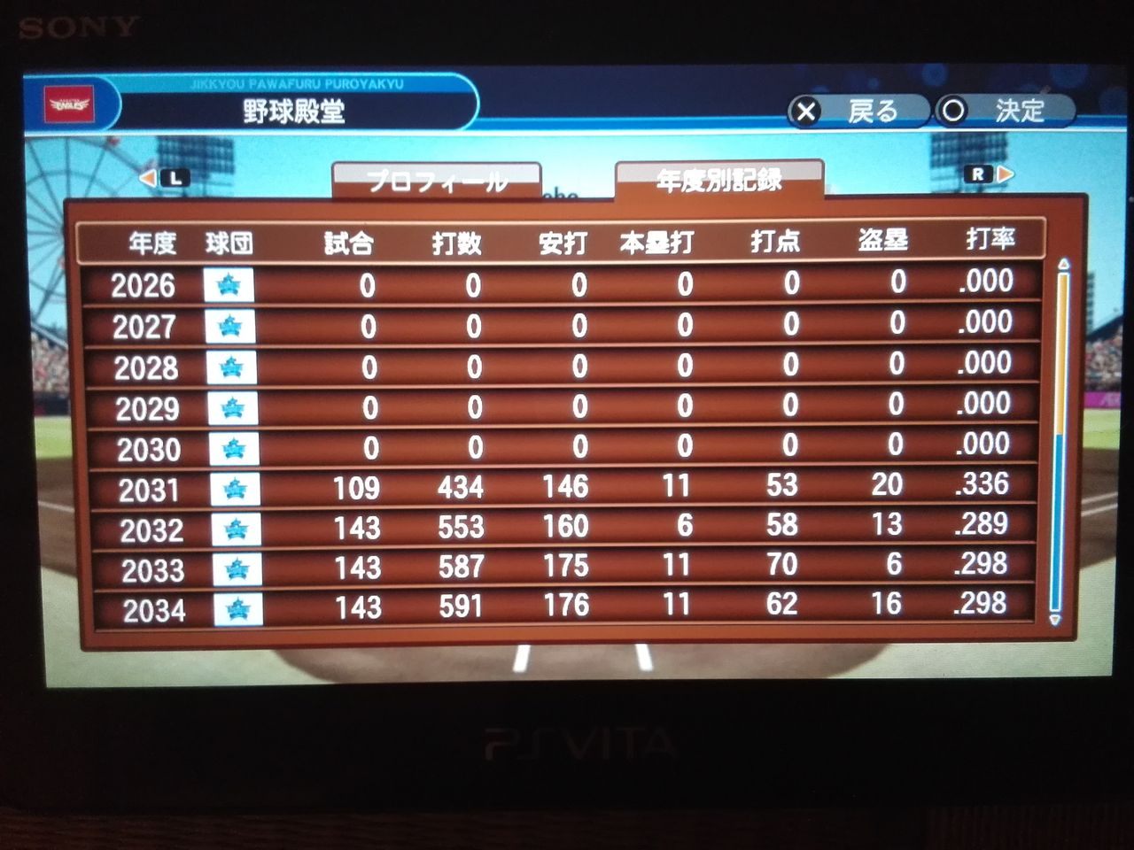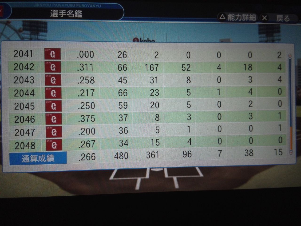 32歳の2034年には.303 43本 124点 3盗の成績で本塁打王、打点王の2冠を獲る そして2037年、メジャーへ