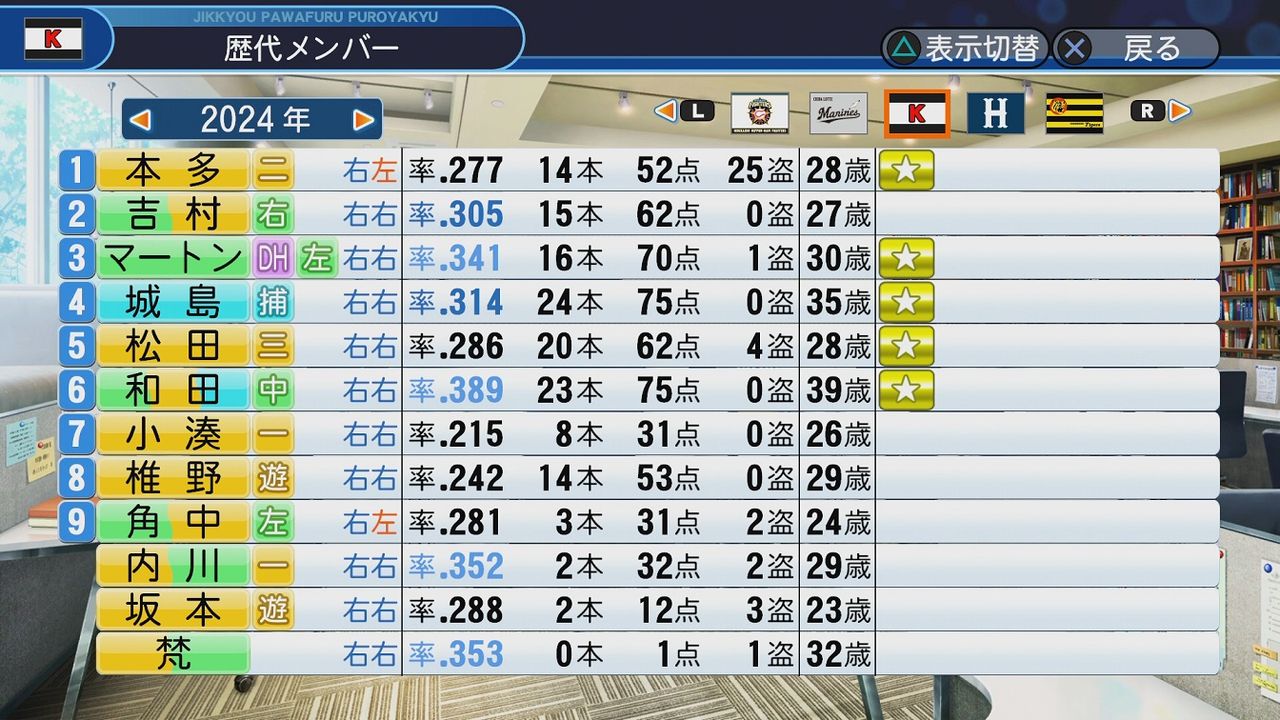 野手陣に20代が一人もいないという驚異の打線である
