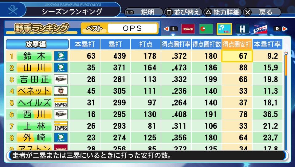 相も変わらず100打点トリオで草